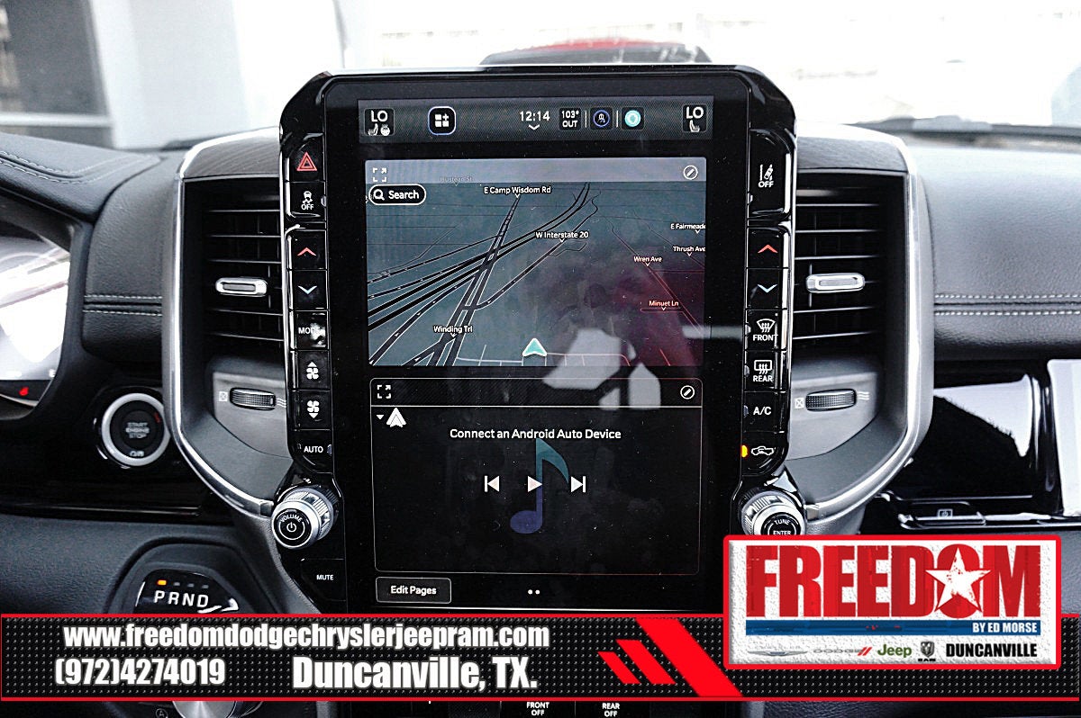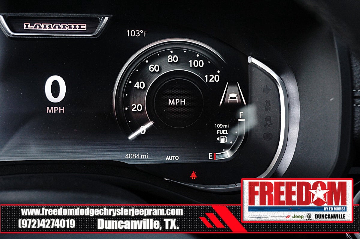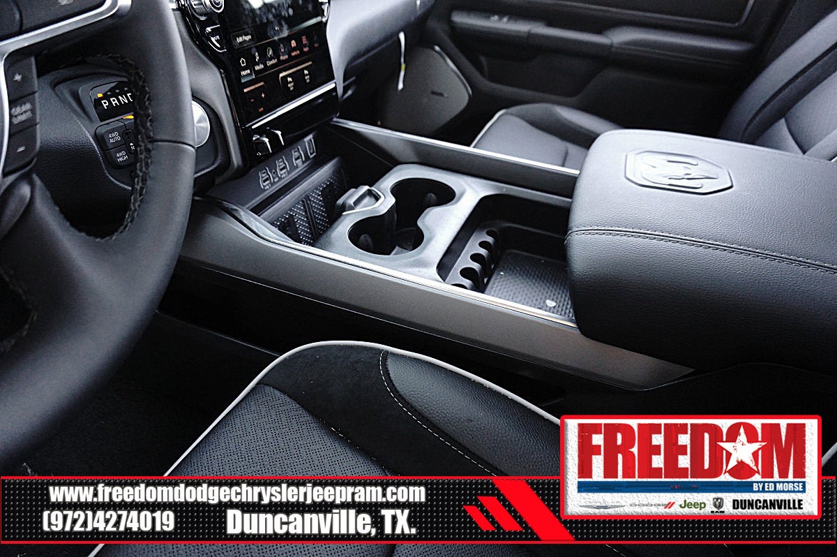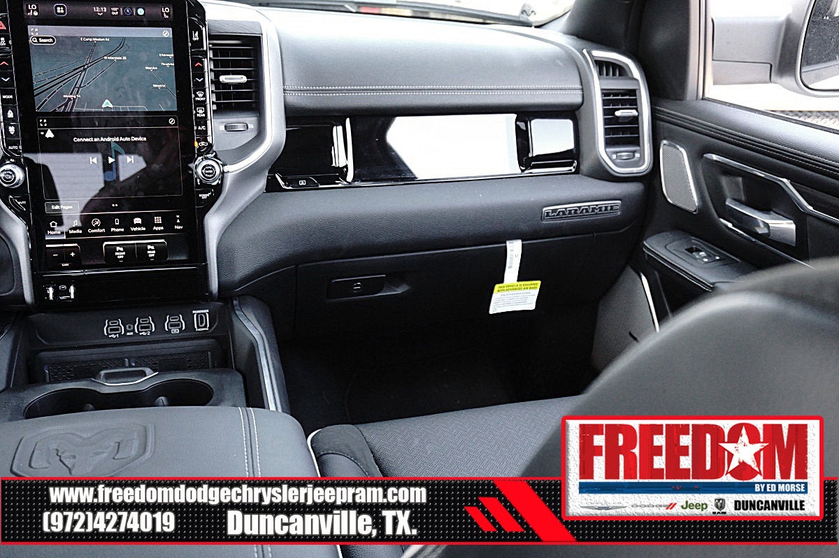 Big cash and no payments for 90 days! Our only Dealership add is GREAT CUSTOMER SERVICE. Real Deals, No Games and No Surprises. Price Includes only Rebates EVERYONE Qualifies for. We Make it Easy No Games. Equipped with Laramie Level 2 Equipment Group (14.4 Touchscreen Display, 4G LTE Wi-Fi Hot Spot, Cluster 12 TFT Color Display, Connected Travel and Traffic Services, Connectivity - US/Canada, Front Passenger Interactive Display, GPS Navigation, Harman/Kardon 19 Speaker Premium Sound, Integrated Center Stack Radio, Integrated Voice Command with Bluetooth®, Power Tailgate, Radio: Uconnect 5 Nav with 14.4 Display, Rain Sensitive Windshield Wipers, SiriusXM Radio Service, SiriusXM with 360L, and USB Host Flip), Laramie Southwest Edition (Accent Color Premium Power Mirrors, Auto Power-Folding Mirrors, Auto-Dimming Exterior Driver Mirror, Black Painted Exterior Mirrors Caps, Body Color Front Bumper, Body Color Rear Bumper with Step Pads, Convex Wide-Angle Exterior Mirror Insert, Dome Dual LED Reading Lamp, Dual-Pane Panoramic Sunroof, Exterior Mirrors Courtesy Lamps, Exterior Mirrors with Heating Element, Exterior Mirrors with Memory, Exterior Mirrors with Supplemental Signals, Grille Surround 3 Body Color Tex 4 Chrome, LED Dome/Reading Lamp, MOPAR Lockable Console Storage, Power Deployable Running Boards, RAM Grille Badge - Chrome, Tow Hooks, and Trailer Brake Control), Quick Order Package 21H Laramie, 10 Speakers, 3.55 Rear Axle Ratio, 4-Wheel Disc Brakes, ABS brakes, Active Noise Control System, Air Conditioning, Alloy wheels, AM/FM radio: SiriusXM with 360L, Anti-Spin Differential Rear Axle, Apple CarPlay/Android Auto, Audio memory, Auto High-beam Headlights, Auto-dimming door mirrors, Auto-dimming Rear-View mirror, Automatic temperature control, Brake assist, Bumpers: chrome, Chrome Exterior Mirrors, Compass, Delay-off headlights, Driver door bin, Driver vanity mirror, Dual front impact airbags, Dual front side impact airbags, Electronic Stability Control, Front anti-roll bar, Front Bucket Seats, Front Center Armrest w/Storage, Front dual zone A/C, Front fog lights, Front License Plate Bracket, Front reading lights, Front wheel independent suspension, Fully automatic headlights, Garage door transmitter, Heated door mirrors, Heated front seats, Heated rear seats, Heated steering wheel, Illuminated entry, Leather steering wheel, Leather Trimmed Bucket Seats, Low tire pressure warning, Manufacturer's Statement of Origin, Memory seat, Navigation System, Occupant sensing airbag, Off-Road Information Pages, Outside temperature display, Overhead airbag, Overhead console, Panic alarm, ParkView Rear Back-Up Camera, Passenger door bin, Passenger vanity mirror, Power door mirrors, Power driver seat, Power passenger seat, Power steering, Power windows, Radio data system, Radio: Uconnect 5 Navigation with 12.0 Display, Rear anti-roll bar, Rear reading lights, Rear seat center armrest, Rear step bumper, Remote keyless entry, Security system, Speed control, Split folding rear seat, Steering wheel mounted audio controls, Tachometer, Telescoping steering wheel, Tilt steering wheel, Traction control, Trip computer, Turn signal indicator mirrors, Variably intermittent wipers, Ventilated front seats, Voltmeter, and Wheels: 20 x 9 Premium Paint/Polish Freedom uses very reasonable effort to ensure the accuracy of information, we are not responsible for any errors or omissions contained on these pages. Please verify any information in question with Freedom Chrysler Dodge Jeep Ram * Images, prices, and options shown, including vehicle color, trim, options, pricing and other specifications are subject to availability, incentive offerings, current pricing and credit worthiness. * MSRP is the Manufacturer's Suggested Retail Price (MSRP) of the vehicle. It does not include any taxes, fees or other charges. Price includes: $3500 - 2026 National Retail Consumer Cash . Exp. 02/0