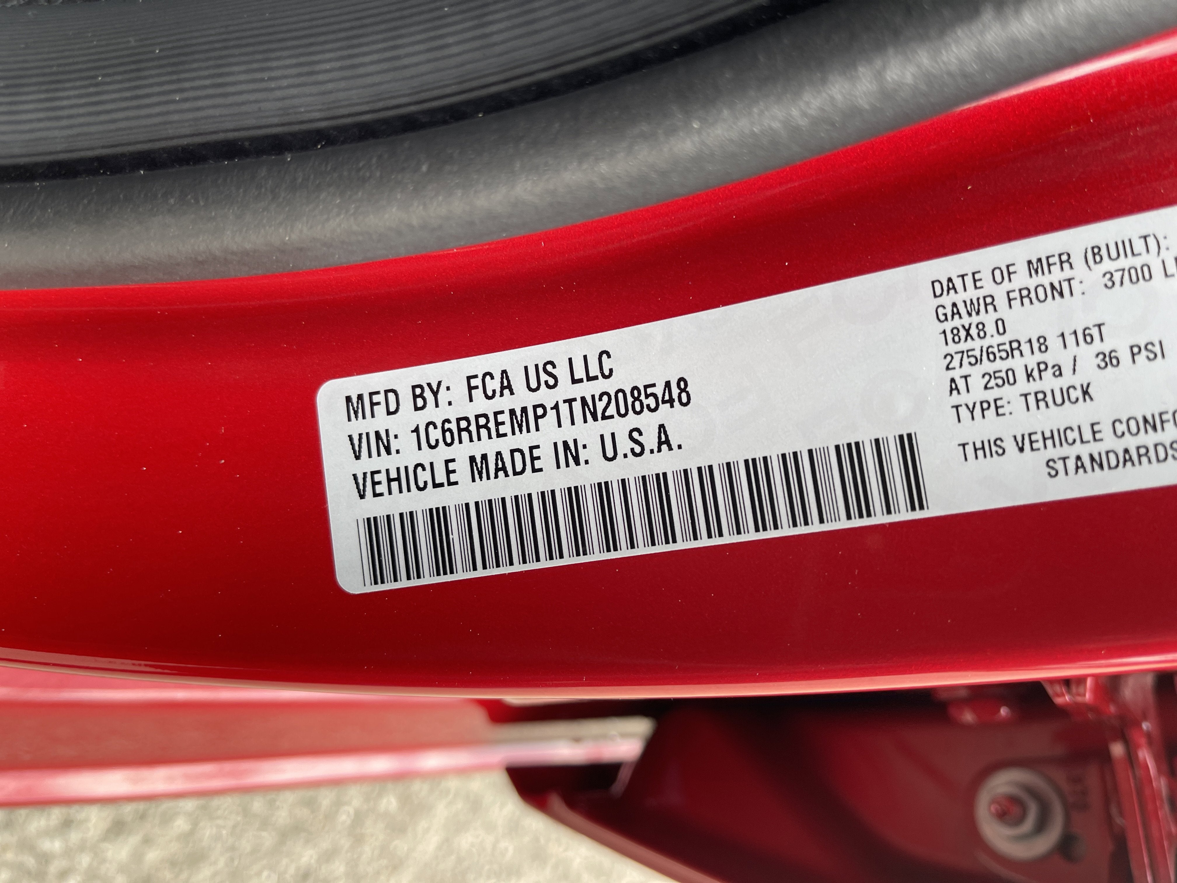 - Rear Tire Size: P275/65TR18