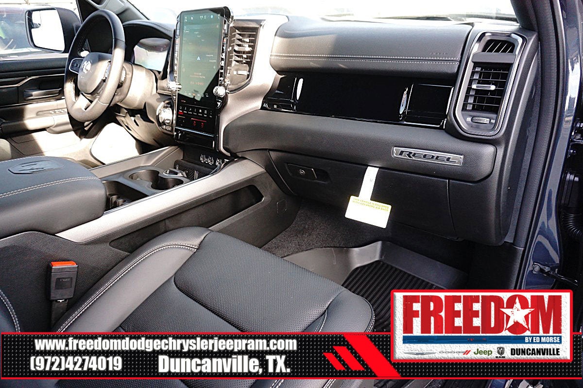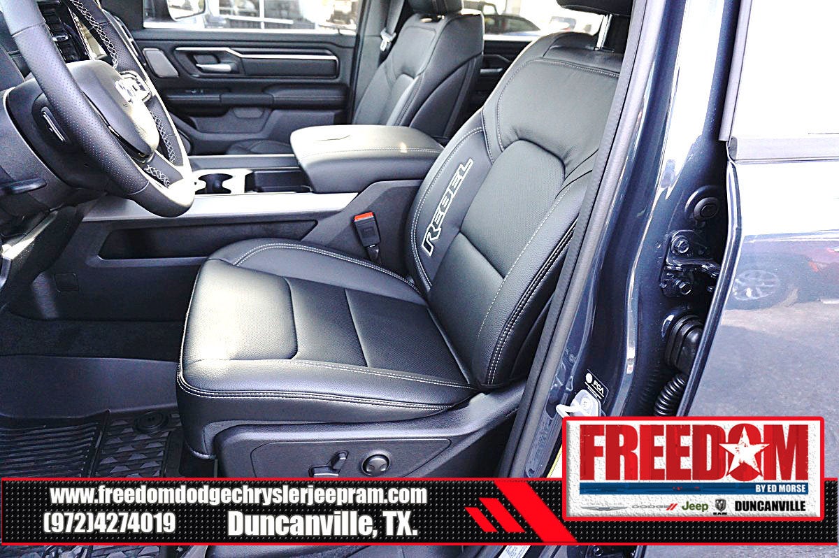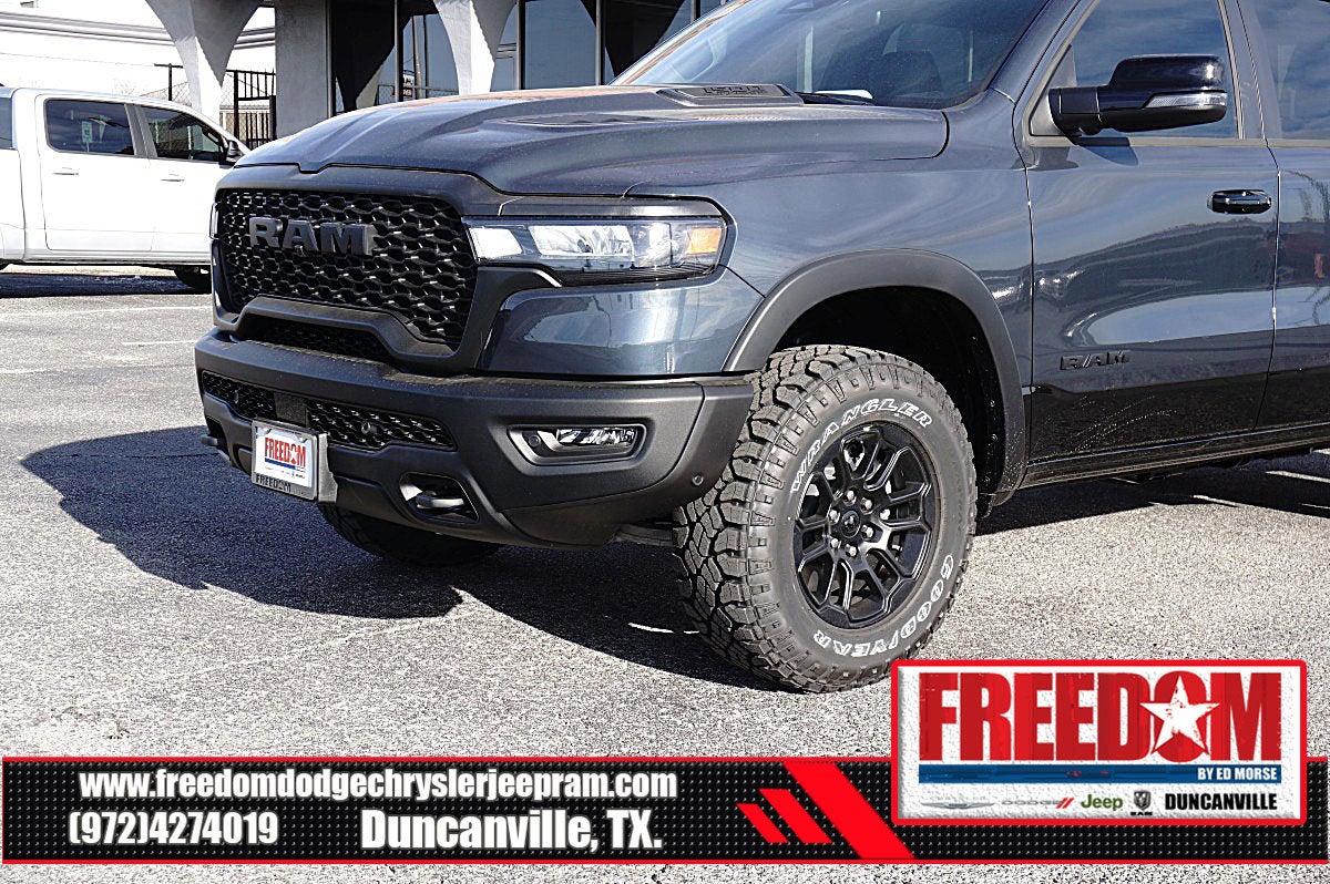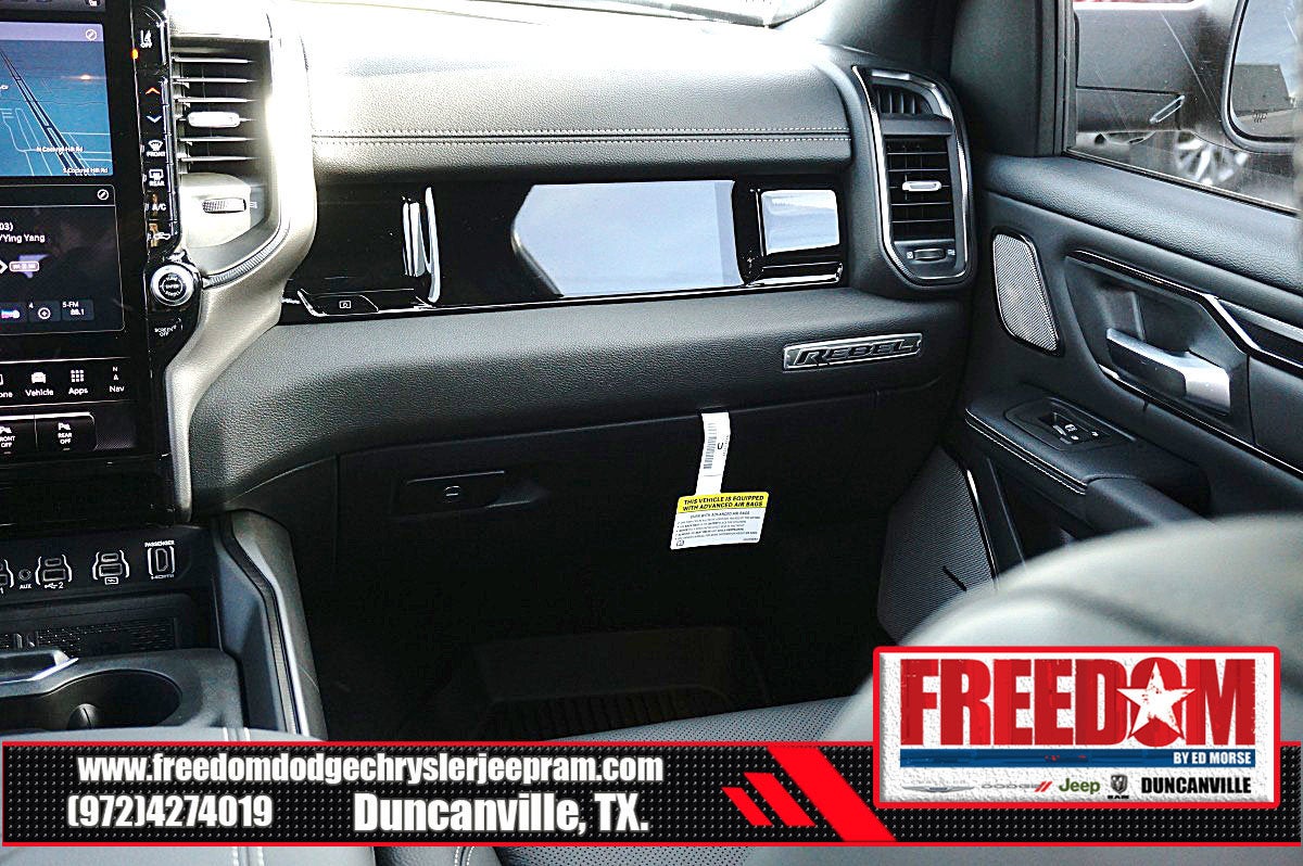 Big cash and no payments for 90 days! Our only Dealership add is GREAT CUSTOMER SERVICE. Real Deals, No Games and No Surprises. Price Includes only Rebates EVERYONE Qualifies for. We Make it Easy No Games. Equipped with Quick Order Package 21W Rebel, Rebel Level 2 Equipment Group (115V Auxiliary Rear Power Outlet, 14.4 Touchscreen Display, 2-Door Passive Entry, Front Door Locks, 4G LTE Wi-Fi Hot Spot, Accent Color Door Handles, Accent Color Premium Power Mirrors, Accent Color Tailgate Handle, Apple CarPlay, Auto Power-Folding Mirrors, Auto-Dimming Exterior Driver Mirror, Black Painted Exterior Mirrors Caps, Connected Travel and Traffic Services, Connectivity - US/Canada, Convex Wide-Angle Exterior Mirror Insert, Disassociated Touchscreen Display, Driver Seat Memory, Dual Wireless Charging Pad, Exterior Mirrors Approach Lamps, Exterior Mirrors Courtesy Lamps, Exterior Mirrors with Heating Element, Exterior Mirrors with Memory, Exterior Mirrors with Supplemental Signals, Front Passenger Interactive Display, Global Telematics Box Module, Google Android Auto, GPS Antenna Input, GPS Navigation, Harman/Kardon 19 Speaker Premium Sound, HD Radio, Heated Second Row Seats, Integrated Center Stack Radio, Integrated Voice Command with Bluetooth®, Media Hub with 2 Charge Only USBs, Off-Road Information Pages, Power 2-Way Passenger Lumbar Adjust, Power Adjust 8-Way Front Passenger Seat, Power Adjustable Pedals with Memory, Power Tailgate, Proximity Approach/Departure Lamps, Radio: Uconnect 5 Nav with 14.4 Display, Radio/Driver Seat/Mirrors/Pedals Memory, Rain Sensitive Windshield Wipers, Rear Window Defroster, Security Alarm, SiriusXM Radio Service, SiriusXM with 360L, Smartphone as a Key Capable, and USB Host Flip), 10 Speakers, 3.92 Rear Axle Ratio, 33 Gallon Fuel Tank, 4 Way Front Headrests, 4-Wheel Disc Brakes, ABS brakes, Active Noise Control System, Air Conditioning, Alloy wheels, AM/FM radio: SiriusXM with 360L, Apple CarPlay/Android Auto, Auto High-beam Headlights, Auto-dimming Rear-View mirror, Automatic temperature control, Black Exterior Mirrors, Brake assist, Bucket Seats, Cloth/Vinyl Bucket Seats, Compass, Delay-off headlights, Driver door bin, Driver vanity mirror, Dual front impact airbags, Dual front side impact airbags, Electronic Stability Control, Front anti-roll bar, Front Bucket Seats, Front Center Armrest w/Storage, Front dual zone A/C, Front fog lights, Front License Plate Bracket, Front reading lights, Front Seat Back Map Pockets, Front wheel independent suspension, Full Length Upgraded Floor Console, Fully automatic headlights, Garage door transmitter, Heated door mirrors, Heated Front Seats, Heated front seats, Heated Steering Wheel, Heated steering wheel, Illuminated entry, Leather steering wheel, Low tire pressure warning, Manual Folding Exterior Mirrors, Manufacturer's Statement of Origin, Navigation System, Occupant sensing airbag, Outside temperature display, Overhead airbag, Overhead console, Panic alarm, ParkView Rear Back-Up Camera, Passenger door bin, Passenger vanity mirror, Power 2-Way Driver Lumbar Adjust, Power Adjust 8-Way Driver Seat, Power door mirrors, Power driver seat, Power steering, Power windows, Radio data system, Radio: Uconnect 5 Navigation with 12.0 Display, Rear 60/40 Folding Seat, Rear anti-roll bar, Rear seat center armrest, Rear step bumper, Remote keyless entry, Speed control, Split folding rear seat, Steering wheel mounted audio controls, Tachometer, Telescoping steering wheel, Tilt steering wheel, Traction control, Trailer Brake Control, Trip computer, Variably intermittent wipers, Voltmeter, and Wheels: 18 x 8.0 Painted Mid-Gloss Black Freedom uses very reasonable effort to ensure the accuracy of infor Price includes: $1000 - 2026 Southwest BC State of Texas Regional Bonus Cash . Exp. 04/30/2026 $3500 - 2026 National Retail Bonus Cash . Exp. 04/30/2026 $500 - 2026 National 2026 Military Bonus Cash . Exp. 01/0