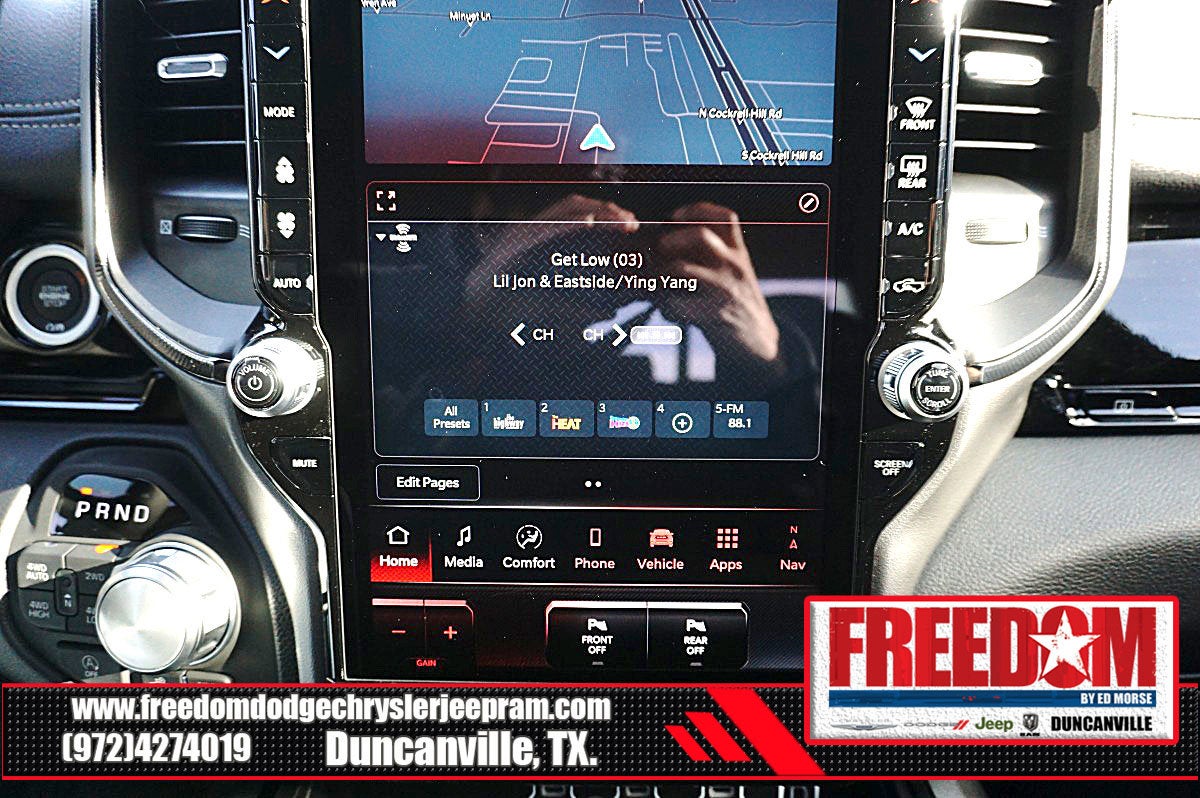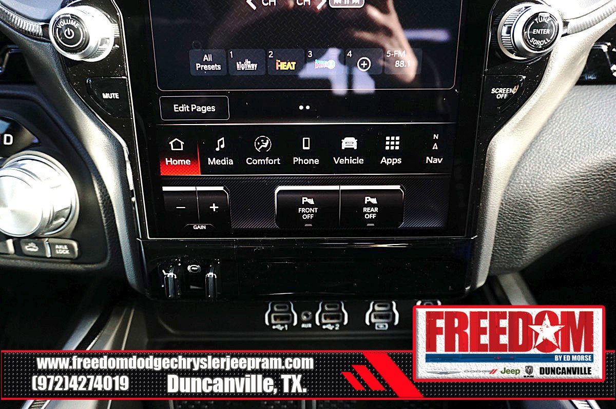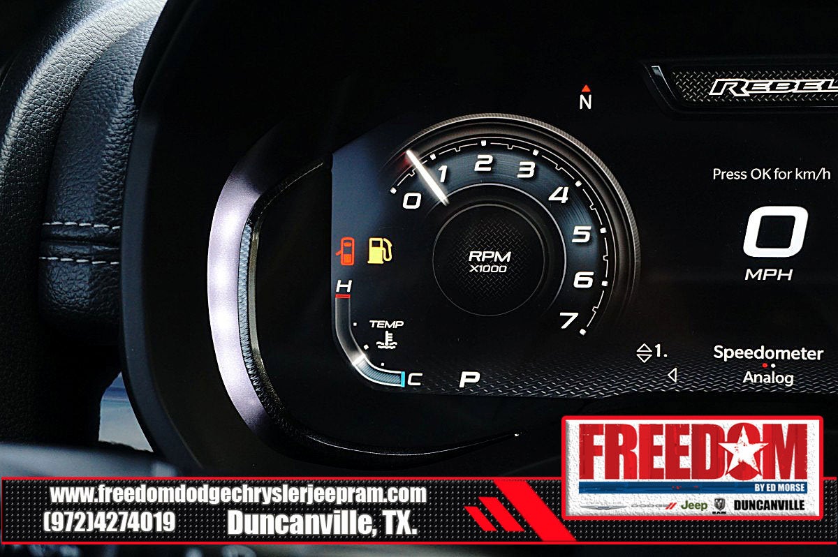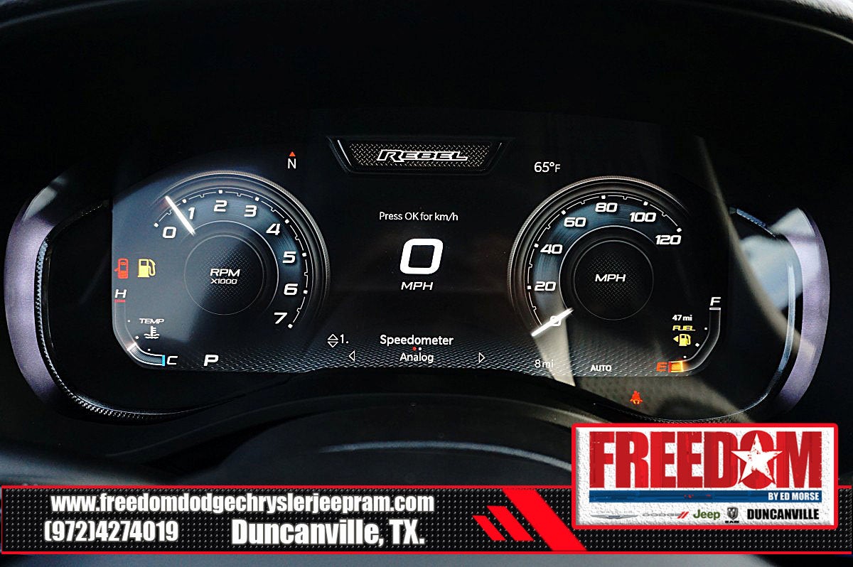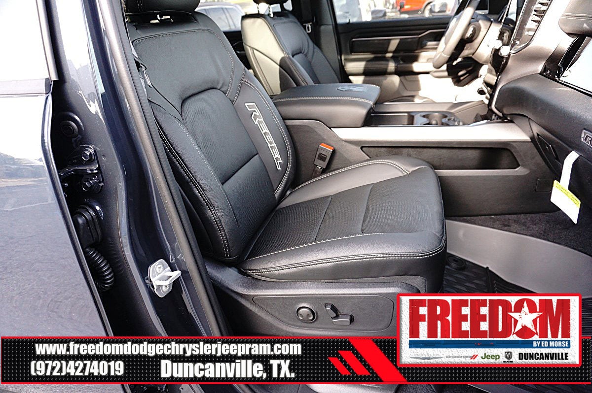 Big cash and no payments for 90 days! Our only Dealership add is GREAT CUSTOMER SERVICE. Real Deals, No Games and No Surprises. Price Includes only Rebates EVERYONE Qualifies for. We Make it Easy No Games. Equipped with Quick Order Package 21W Rebel, Rebel Level 2 Equipment Group (115V Auxiliary Rear Power Outlet, 14.4 Touchscreen Display, 2-Door Passive Entry, Front Door Locks, 4G LTE Wi-Fi Hot Spot, Accent Color Door Handles, Accent Color Premium Power Mirrors, Accent Color Tailgate Handle, Apple CarPlay, Auto Power-Folding Mirrors, Auto-Dimming Exterior Driver Mirror, Black Painted Exterior Mirrors Caps, Connected Travel and Traffic Services, Connectivity - US/Canada, Convex Wide-Angle Exterior Mirror Insert, Disassociated Touchscreen Display, Driver Seat Memory, Dual Wireless Charging Pad, Exterior Mirrors Approach Lamps, Exterior Mirrors Courtesy Lamps, Exterior Mirrors with Heating Element, Exterior Mirrors with Memory, Exterior Mirrors with Supplemental Signals, Front Passenger Interactive Display, Global Telematics Box Module, Google Android Auto, GPS Antenna Input, GPS Navigation, Harman/Kardon 19 Speaker Premium Sound, HD Radio, Heated Second Row Seats, Integrated Center Stack Radio, Integrated Voice Command with Bluetooth®, Media Hub with 2 Charge Only USBs, Off-Road Information Pages, Power 2-Way Passenger Lumbar Adjust, Power Adjust 8-Way Front Passenger Seat, Power Adjustable Pedals with Memory, Power Tailgate, Proximity Approach/Departure Lamps, Radio: Uconnect 5 Nav with 14.4 Display, Radio/Driver Seat/Mirrors/Pedals Memory, Rain Sensitive Windshield Wipers, Rear Window Defroster, Security Alarm, SiriusXM Radio Service, SiriusXM with 360L, Smartphone as a Key Capable, and USB Host Flip), 10 Speakers, 3.92 Rear Axle Ratio, 33 Gallon Fuel Tank, 4 Way Front Headrests, 4-Wheel Disc Brakes, ABS brakes, Active Noise Control System, Air Conditioning, Alloy wheels, AM/FM radio: SiriusXM with 360L, Apple CarPlay/Android Auto, Auto High-beam Headlights, Auto-dimming Rear-View mirror, Automatic temperature control, Black Exterior Mirrors, Brake assist, Bucket Seats, Cloth/Vinyl Bucket Seats, Compass, Delay-off headlights, Driver door bin, Driver vanity mirror, Dual front impact airbags, Dual front side impact airbags, Electronic Stability Control, Front anti-roll bar, Front Bucket Seats, Front Center Armrest w/Storage, Front dual zone A/C, Front fog lights, Front License Plate Bracket, Front reading lights, Front Seat Back Map Pockets, Front wheel independent suspension, Full Length Upgraded Floor Console, Fully automatic headlights, Garage door transmitter, Heated door mirrors, Heated Front Seats, Heated front seats, Heated Steering Wheel, Heated steering wheel, Illuminated entry, Leather steering wheel, Low tire pressure warning, Manual Folding Exterior Mirrors, Manufacturer's Statement of Origin, Navigation System, Occupant sensing airbag, Outside temperature display, Overhead airbag, Overhead console, Panic alarm, ParkView Rear Back-Up Camera, Passenger door bin, Passenger vanity mirror, Power 2-Way Driver Lumbar Adjust, Power Adjust 8-Way Driver Seat, Power door mirrors, Power driver seat, Power steering, Power windows, Radio data system, Radio: Uconnect 5 Navigation with 12.0 Display, Rear 60/40 Folding Seat, Rear anti-roll bar, Rear seat center armrest, Rear step bumper, Remote keyless entry, Speed control, Split folding rear seat, Steering wheel mounted audio controls, Tachometer, Telescoping steering wheel, Tilt steering wheel, Traction control, Trailer Brake Control, Trip computer, Variably intermittent wipers, Voltmeter, and Wheels: 18 x 8.0 Painted Mid-Gloss Black Freedom uses very reasonable effort to ensure the accuracy of infor Price includes: $1000 - 2026 Southwest BC State of Texas Regional Bonus Cash . Exp. 04/30/2026 $3500 - 2026 National Retail Bonus Cash . Exp. 04/30/2026 $500 - 2026 National 2026 Military Bonus Cash . Exp. 01/0