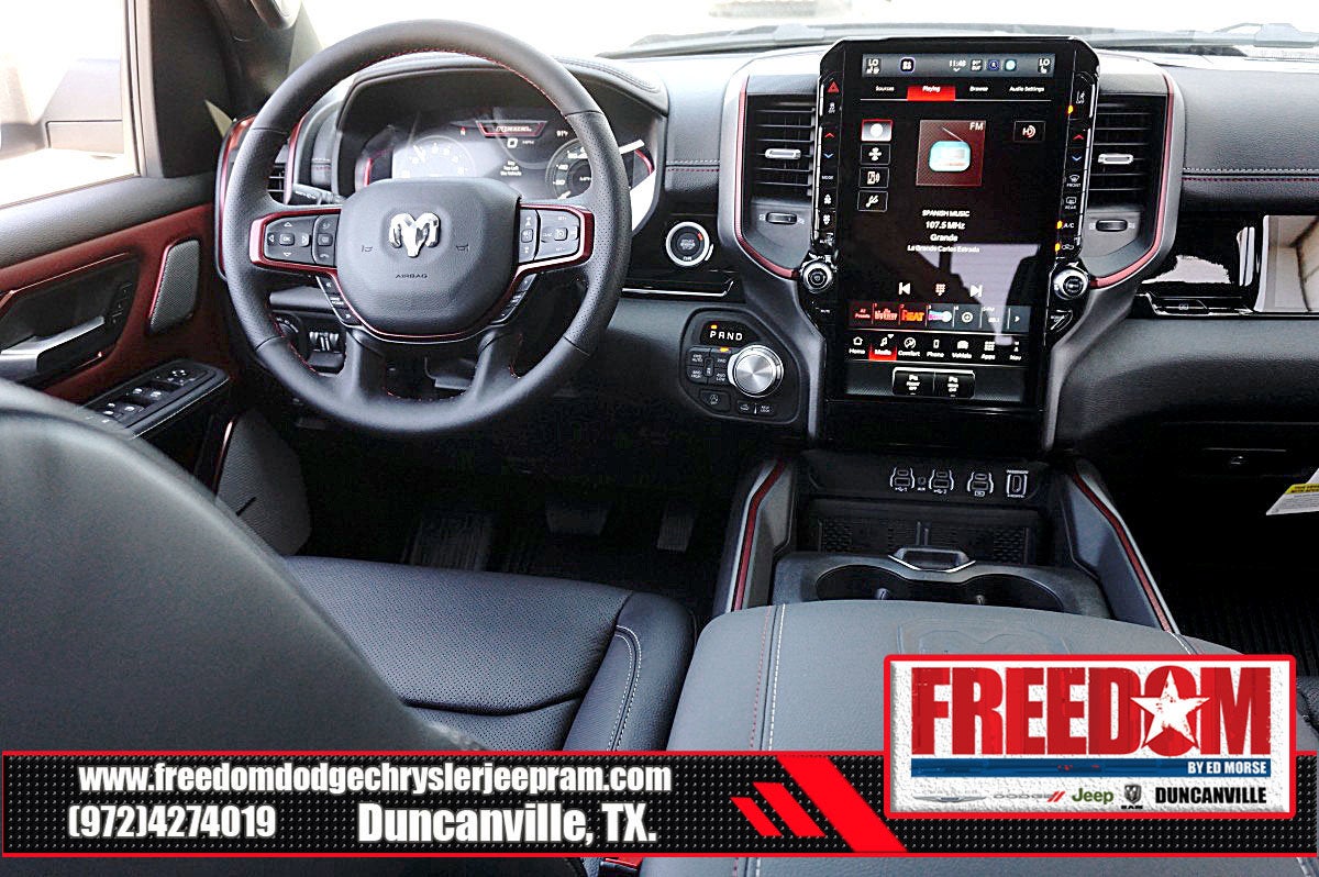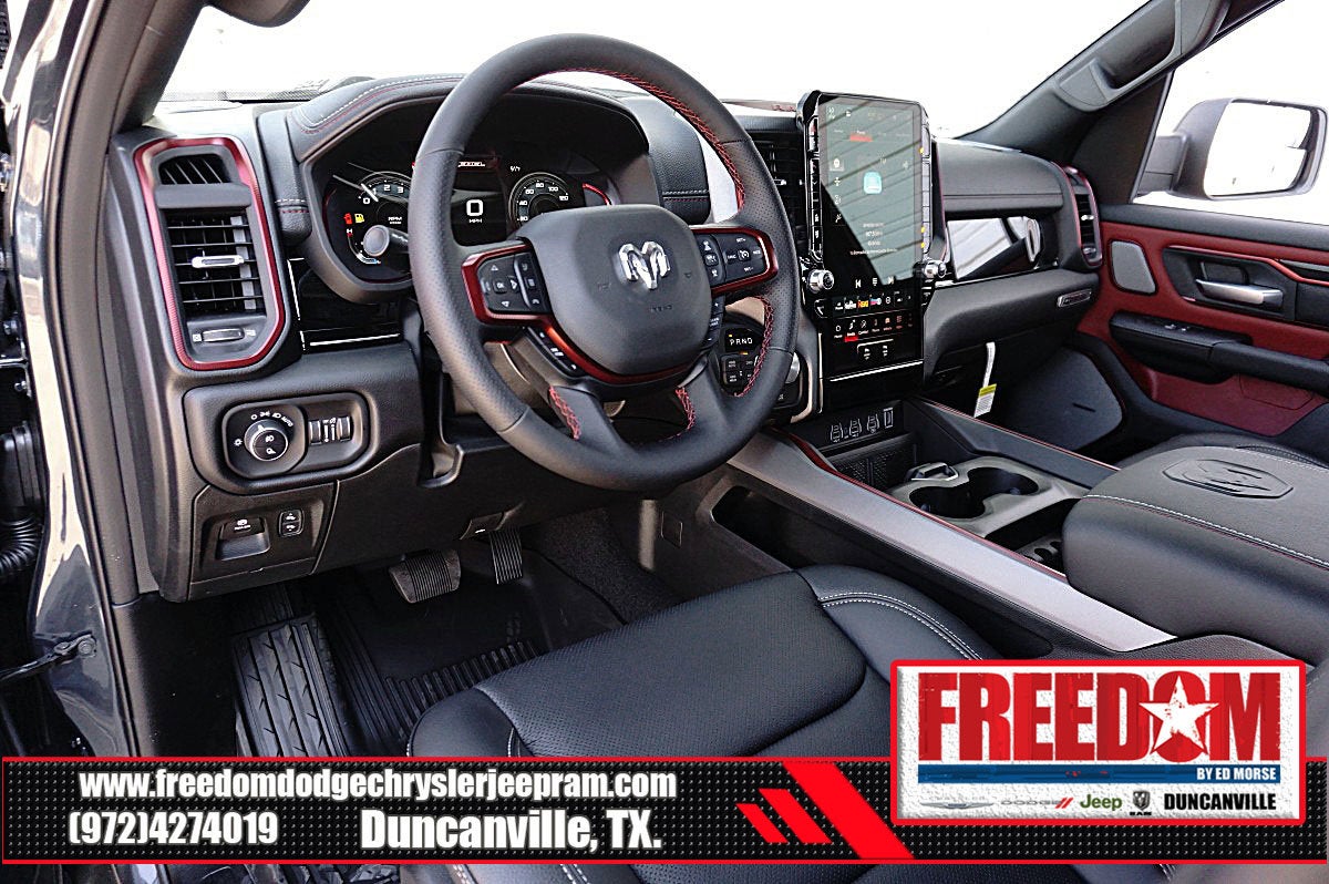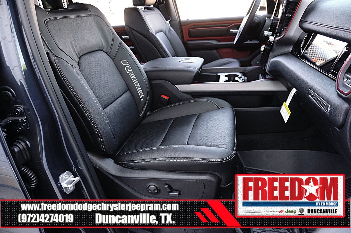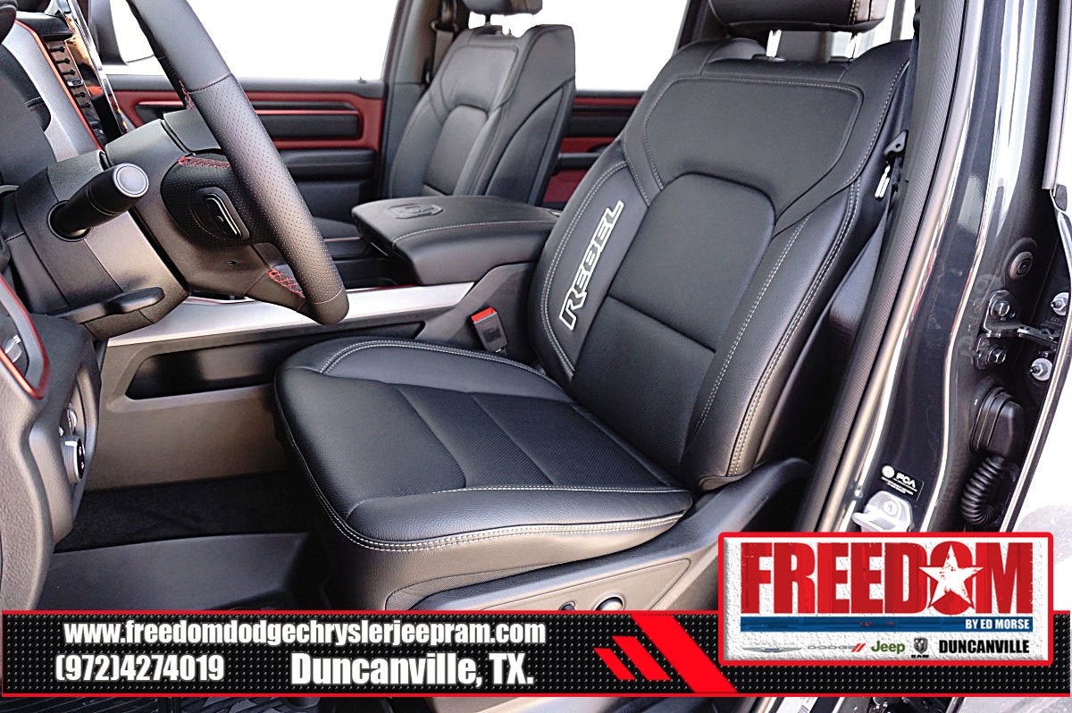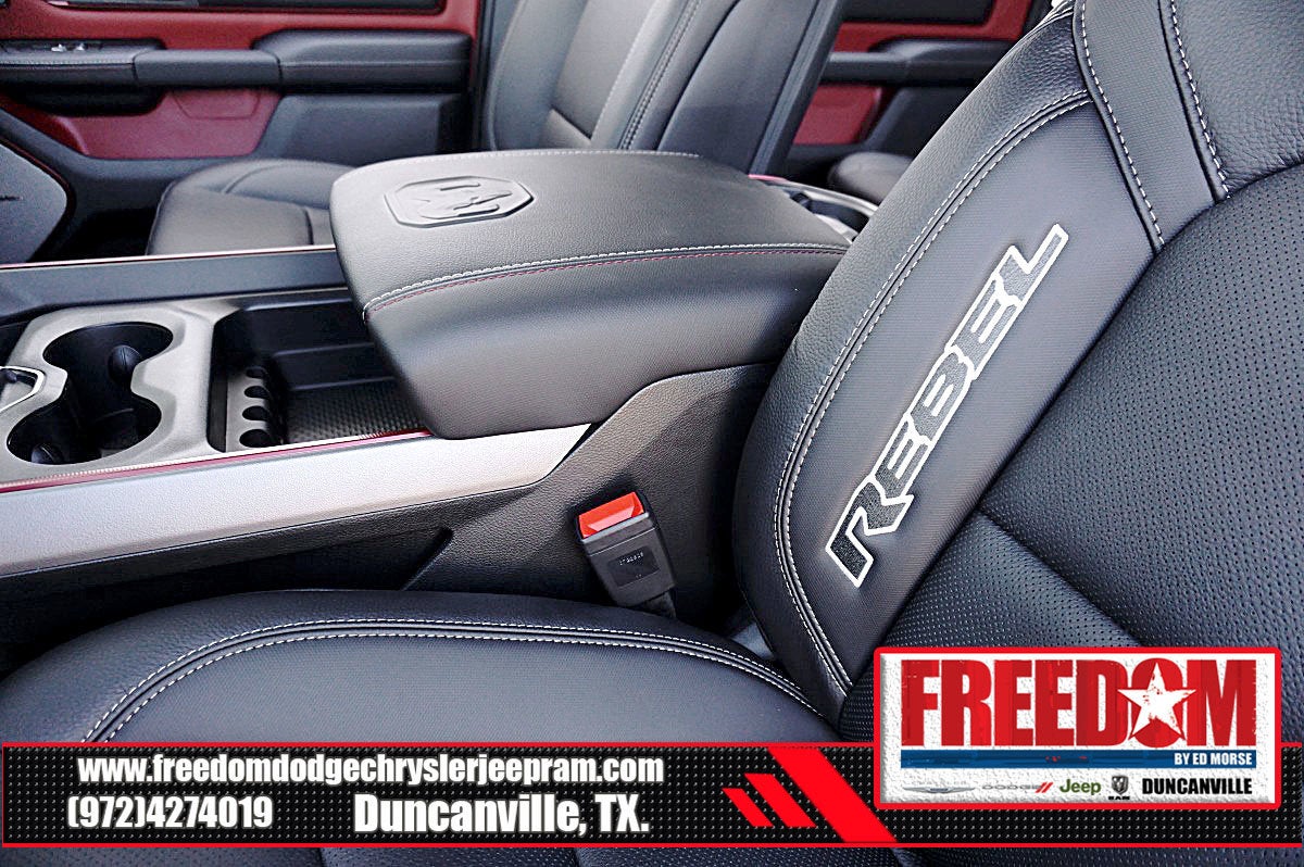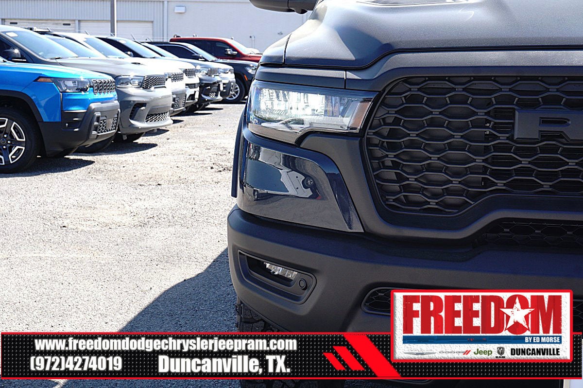 Big cash and no payments for 90 days! Our only Dealership add is GREAT CUSTOMER SERVICE. Real Deals, No Games and No Surprises. Price Includes only Rebates EVERYONE Qualifies for. We Make it Easy No Games. Equipped with Quick Order Package 21W Rebel, Rebel Level 2 Equipment Group (115V Auxiliary Rear Power Outlet, 14.4 Touchscreen Display, 2-Door Passive Entry, Front Door Locks, 4G LTE Wi-Fi Hot Spot, Accent Color Door Handles, Accent Color Premium Power Mirrors, Accent Color Tailgate Handle, Apple CarPlay, Auto Power-Folding Mirrors, Auto-Dimming Exterior Driver Mirror, Black Painted Exterior Mirrors Caps, Connected Travel and Traffic Services, Connectivity - US/Canada, Convex Wide-Angle Exterior Mirror Insert, Disassociated Touchscreen Display, Driver Seat Memory, Dual Wireless Charging Pad, Exterior Mirrors Approach Lamps, Exterior Mirrors Courtesy Lamps, Exterior Mirrors with Heating Element, Exterior Mirrors with Memory, Exterior Mirrors with Supplemental Signals, Front Passenger Interactive Display, Global Telematics Box Module, Google Android Auto, GPS Antenna Input, GPS Navigation, Harman/Kardon 19 Speaker Premium Sound, HD Radio, Heated Second Row Seats, Integrated Center Stack Radio, Integrated Voice Command with Bluetooth®, Media Hub with 2 Charge Only USBs, Off-Road Information Pages, Power 2-Way Passenger Lumbar Adjust, Power Adjust 8-Way Front Passenger Seat, Power Adjustable Pedals with Memory, Power Tailgate, Proximity Approach/Departure Lamps, Radio: Uconnect 5 Nav with 14.4 Display, Radio/Driver Seat/Mirrors/Pedals Memory, Rain Sensitive Windshield Wipers, Rear Window Defroster, Security Alarm, SiriusXM Radio Service, SiriusXM with 360L, Smartphone as a Key Capable, and USB Host Flip), 10 Speakers, 3.92 Rear Axle Ratio, 4 Way Front Headrests, 4-Wheel Disc Brakes, ABS brakes, Active Noise Control System, Air Conditioning, Alloy wheels, AM/FM radio: SiriusXM with 360L, Apple CarPlay/Android Auto, Auto High-beam Headlights, Auto-dimming Rear-View mirror, Automatic temperature control, Black Exterior Mirrors, Brake assist, Bucket Seats, Cloth/Vinyl Bucket Seats, Compass, Delay-off headlights, Driver door bin, Driver vanity mirror, Dual front impact airbags, Dual front side impact airbags, Electronic Stability Control, Front anti-roll bar, Front Bucket Seats, Front Center Armrest w/Storage, Front dual zone A/C, Front fog lights, Front License Plate Bracket, Front reading lights, Front Seat Back Map Pockets, Front wheel independent suspension, Full Length Upgraded Floor Console, Fully automatic headlights, Garage door transmitter, Heated door mirrors, Heated Front Seats, Heated front seats, Heated Steering Wheel, Heated steering wheel, Illuminated entry, Leather steering wheel, Low tire pressure warning, Manual Folding Exterior Mirrors, Navigation System, Occupant sensing airbag, Outside temperature display, Overhead airbag, Overhead console, Panic alarm, ParkView Rear Back-Up Camera, Passenger door bin, Passenger vanity mirror, Power 2-Way Driver Lumbar Adjust, Power Adjust 8-Way Driver Seat, Power door mirrors, Power driver seat, Power steering, Power windows, Radio data system, Radio: Uconnect 5 Navigation with 12.0 Display, Rear 60/40 Folding Seat, Rear anti-roll bar, Rear seat center armrest, Rear step bumper, Remote keyless entry, Speed control, Split folding rear seat, Steering wheel mounted audio controls, Tachometer, Telescoping steering wheel, Tilt steering wheel, Traction control, Trip computer, Variably intermittent wipers, Voltmeter, and Wheels: 18 x 8.0 Painted Mid-Gloss Black Freedom uses very reasonable effort to ensure the accuracy of information, we are not responsible for any errors or omissions contained on these pa Price includes: $1000 - 2026 Southwest BC State of Texas Regional Bonus Cash . Exp. 04/30/2026 $3500 - 2026 National Retail Bonus Cash . Exp. 04/30/2026 $500 - 2026 National 2026 Military Bonus Cash . Exp. 01/0