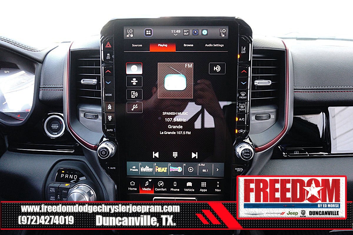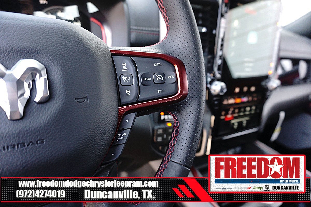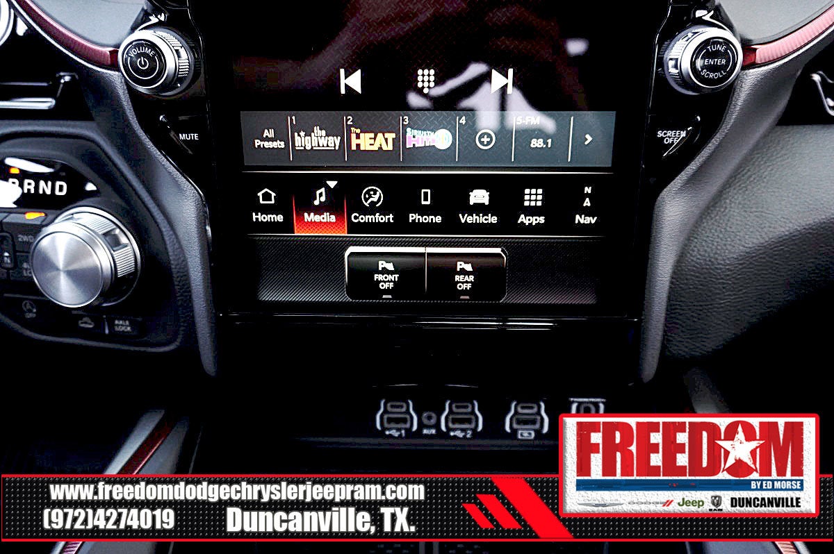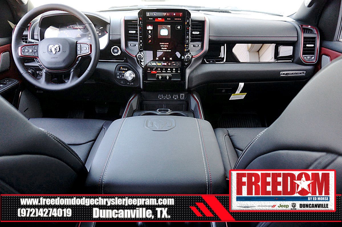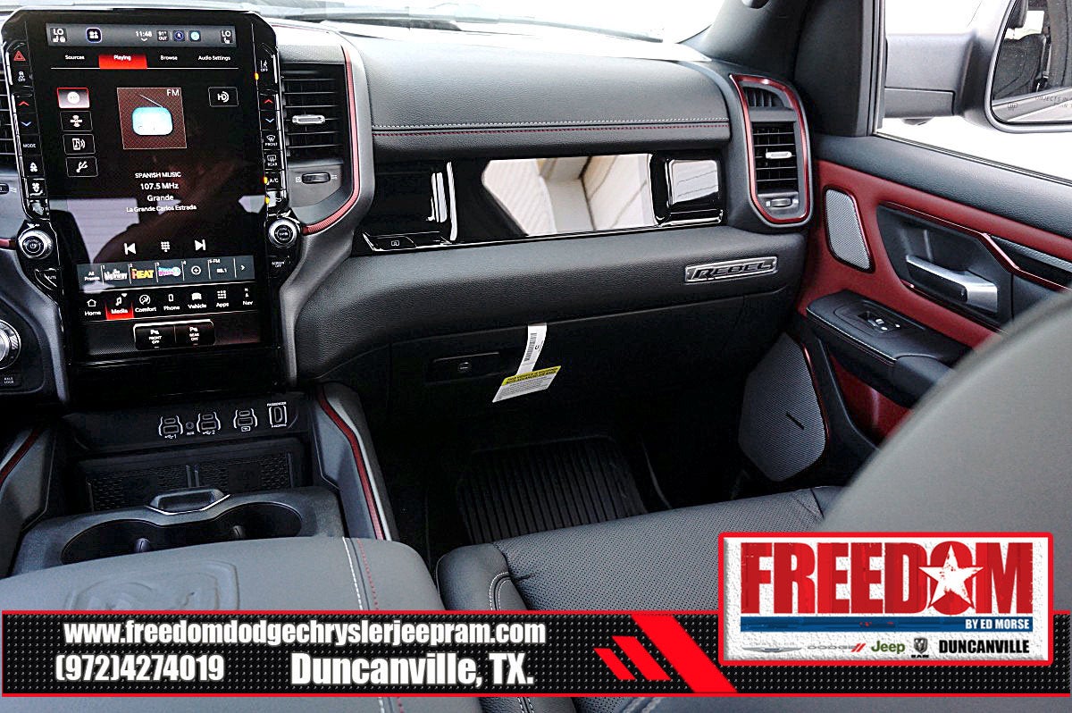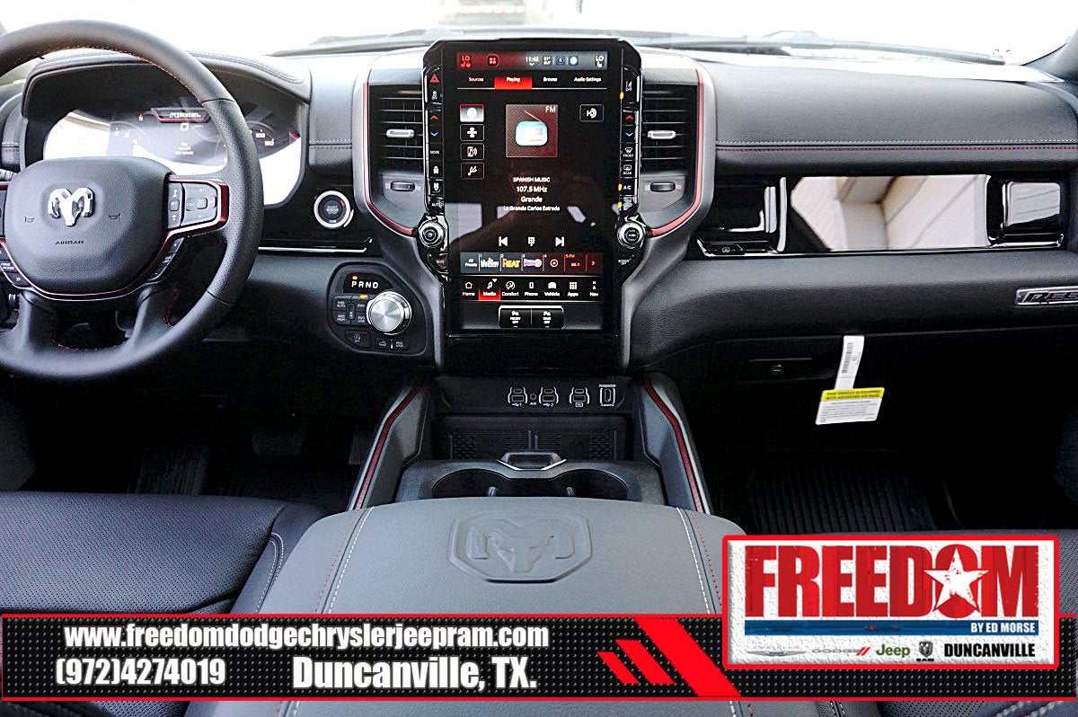 Big cash and no payments for 90 days! Our only Dealership add is GREAT CUSTOMER SERVICE. Real Deals, No Games and No Surprises. Price Includes only Rebates EVERYONE Qualifies for. We Make it Easy No Games. Equipped with Quick Order Package 21W Rebel, Rebel Level 2 Equipment Group (115V Auxiliary Rear Power Outlet, 14.4 Touchscreen Display, 2-Door Passive Entry, Front Door Locks, 4G LTE Wi-Fi Hot Spot, Accent Color Door Handles, Accent Color Premium Power Mirrors, Accent Color Tailgate Handle, Apple CarPlay, Auto Power-Folding Mirrors, Auto-Dimming Exterior Driver Mirror, Black Painted Exterior Mirrors Caps, Connected Travel and Traffic Services, Connectivity - US/Canada, Convex Wide-Angle Exterior Mirror Insert, Disassociated Touchscreen Display, Driver Seat Memory, Dual Wireless Charging Pad, Exterior Mirrors Approach Lamps, Exterior Mirrors Courtesy Lamps, Exterior Mirrors with Heating Element, Exterior Mirrors with Memory, Exterior Mirrors with Supplemental Signals, Front Passenger Interactive Display, Global Telematics Box Module, Google Android Auto, GPS Antenna Input, GPS Navigation, Harman/Kardon 19 Speaker Premium Sound, HD Radio, Heated Second Row Seats, Integrated Center Stack Radio, Integrated Voice Command with Bluetooth®, Media Hub with 2 Charge Only USBs, Off-Road Information Pages, Power 2-Way Passenger Lumbar Adjust, Power Adjust 8-Way Front Passenger Seat, Power Adjustable Pedals with Memory, Power Tailgate, Proximity Approach/Departure Lamps, Radio: Uconnect 5 Nav with 14.4 Display, Radio/Driver Seat/Mirrors/Pedals Memory, Rain Sensitive Windshield Wipers, Rear Window Defroster, Security Alarm, SiriusXM Radio Service, SiriusXM with 360L, Smartphone as a Key Capable, and USB Host Flip), 10 Speakers, 3.92 Rear Axle Ratio, 4 Way Front Headrests, 4-Wheel Disc Brakes, ABS brakes, Active Noise Control System, Air Conditioning, Alloy wheels, AM/FM radio: SiriusXM with 360L, Apple CarPlay/Android Auto, Auto High-beam Headlights, Auto-dimming Rear-View mirror, Automatic temperature control, Black Exterior Mirrors, Brake assist, Bucket Seats, Cloth/Vinyl Bucket Seats, Compass, Delay-off headlights, Driver door bin, Driver vanity mirror, Dual front impact airbags, Dual front side impact airbags, Electronic Stability Control, Front anti-roll bar, Front Bucket Seats, Front Center Armrest w/Storage, Front dual zone A/C, Front fog lights, Front License Plate Bracket, Front reading lights, Front Seat Back Map Pockets, Front wheel independent suspension, Full Length Upgraded Floor Console, Fully automatic headlights, Garage door transmitter, Heated door mirrors, Heated Front Seats, Heated front seats, Heated Steering Wheel, Heated steering wheel, Illuminated entry, Leather steering wheel, Low tire pressure warning, Manual Folding Exterior Mirrors, Navigation System, Occupant sensing airbag, Outside temperature display, Overhead airbag, Overhead console, Panic alarm, ParkView Rear Back-Up Camera, Passenger door bin, Passenger vanity mirror, Power 2-Way Driver Lumbar Adjust, Power Adjust 8-Way Driver Seat, Power door mirrors, Power driver seat, Power steering, Power windows, Radio data system, Radio: Uconnect 5 Navigation with 12.0 Display, Rear 60/40 Folding Seat, Rear anti-roll bar, Rear seat center armrest, Rear step bumper, Remote keyless entry, Speed control, Split folding rear seat, Steering wheel mounted audio controls, Tachometer, Telescoping steering wheel, Tilt steering wheel, Traction control, Trip computer, Variably intermittent wipers, Voltmeter, and Wheels: 18 x 8.0 Painted Mid-Gloss Black Freedom uses very reasonable effort to ensure the accuracy of information, we are not responsible for any errors or omissions contained on these pa Price includes: $1000 - 2026 Southwest BC State of Texas Regional Bonus Cash . Exp. 04/30/2026 $3500 - 2026 National Retail Bonus Cash . Exp. 04/30/2026 $500 - 2026 National 2026 Military Bonus Cash . Exp. 01/0