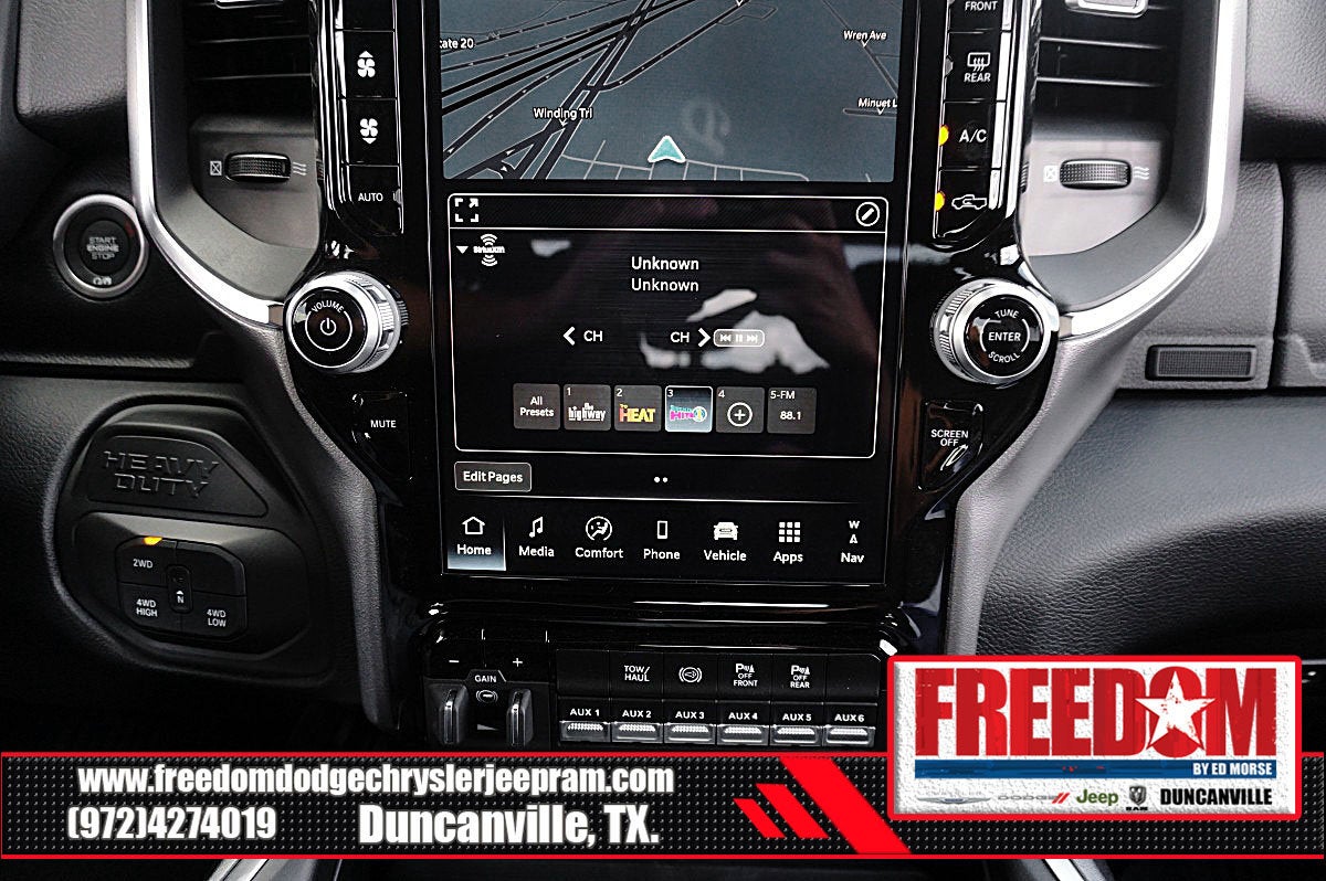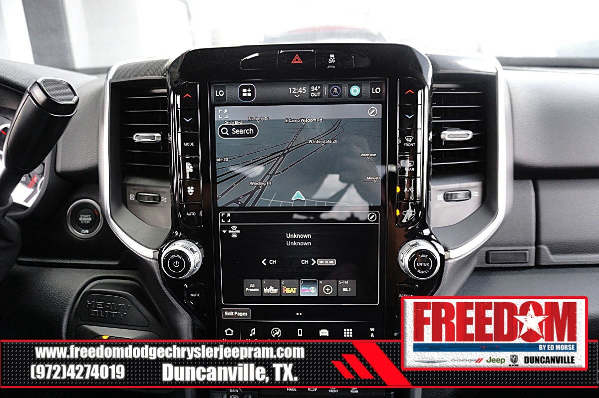 Big cash and no payments for 90 days! Our only Dealership add is GREAT CUSTOMER SERVICE. Real Deals, No Games and No Surprises. Price Includes only Rebates EVERYONE Qualifies for. We Make it Easy No Games. Equipped with Big Horn Level 1 Plus Equipment Group (12 Touchscreen Display, 2 Way Rear Headrest Seat, 2nd Row in Floor Storage Bins, 4 Way Front Headrests, 40/20/40 Split Bench Seat, 4G LTE Wi-Fi Hot Spot, 9 Alpine Speakers with Subwoofer, Air Conditioning ATC with Dual Zone Control, Alexa Built-in, Anti-Spin Differential Rear Axle, Apple CarPlay, Auto Power-Folding Mirrors, Auto-Dimming Rear-View Mirror, Black Exterior Mirrors, Connected Travel and Traffic Services, Connectivity - US/Canada, Disassociated Touchscreen Display, Dual Glove Boxes, Emergency Vehicle Alert System (EVAS), Exterior Mirrors Courtesy Lamps, Exterior Mirrors with Heating Element, Exterior Mirrors with Supplemental Signals, Foam Bottle Insert (door Trim Panel), Folding Flat Load Floor Storage, Footwell Courtesy Lamp, For Details, Visit DriveUconnect.com, For More Info, Call 800-643-2112, Forward and Reverse Utility Lights, Front Armrest with Cupholders, Front Center Seat Cushion Storage, Front Seat Back Map Pockets, Global Telematics Box Module, Glove Box Lamp, Google Android Auto, GPS Antenna Input, GPS Navigation, HD Radio, Integrated Voice Command with Bluetooth®, LED Bed Lighting, Locking Lower Glove Box, Luxury Steering Wheel, Manual Adjust 4-Way Front Passenger Seat, Mirror Running Lights, MOPAR Deployable Bed Step, MOPAR Spray in Bedliner, Off-Road Info Pages, Power 2-Way Driver Lumbar Adjust, Power Adjust 8-Way Driver Seat, Power Adjust Mirrors, Power Heated Folding Telescopic Mirrors, Power Telescoping Mirrors, Power-Adjustable Convex Aux Mirrors, Premium Cloth 40/20/40 Bench Seat, Radio: Uconnect 5 Navigation with 12.0 Display, Rear 60/40 Folding Seat, Rear Dome with on/Off Switch Lamp, Remote Start System, Remote USB Port - Charge Only, Selectable Tire Fill Alert, SiriusXM Radio Service, SiriusXM with 360L, Steering Wheel Mounted Audio Controls, Storage Tray, and Trailer Tow Pages), Night Edition (Black Exterior Truck Badging, Black Interior Accents, Black Wheel Center Hub, Body Color Grille-Surround, Gloss Black Nostrils/Mic Black Grille, Painted Front Bumper, Painted Rear Bumper, and Wheels: 20 x 8.0 Black Painted Aluminum), Quick Order Package 24Y Lone Star (Lone Star Badge), 4-Wheel Disc Brakes, 6 Speakers, ABS brakes, Air Conditioning, Alloy wheels, AM/FM radio: SiriusXM, Apple CarPlay/Android Auto, Brake assist, Bumpers: chrome, Center Hub, Cloth 40/20/40 Bench Seat, Compass, Dash Pass Thru Wire Circuits, Delay-off headlights, Driver door bin, Dual front impact airbags, Dual front side impact airbags, Electronic Stability Control, Engine Block Heater, Front anti-roll bar, Front Center Armrest w/Storage, Front fog lights, Front License Plate Bracket, Front reading lights, Fully automatic headlights, Heated door mirrors, Illuminated entry, Instrument Panel Mounted Auxiliary Switches, Low tire pressure warning, Manual Adjust 4-Way Driver Seat, Manufacturer's Statement of Origin, MOPAR Front and Rear Rubber Floor Mats, Occupant sensing airbag, Outside temperature display, Overhead airbag, Overhead console, Painted Flat Wheel-to-Wheel Side Steps, Panic alarm, ParkView Rear Back-Up Camera, Passenger door bin, Passenger vanity mirror, Power door mirrors, Power steering, Power windows, Radio data system, Radio: Uconnect 5 with 8.4 Display, Rear anti-roll bar, Rear Folding Seat, Rear seat center armrest, Rear step bumper, Rear window defroster, Remote keyless entry, Security system, Speed control, Tachometer, Tilt steering wheel, Traction control, Trip computer, Turn signal indicator mirrors, Variably intermittent wipers, Voltmeter, and Price includes: $1000 - 2026 National Bonus Cash . Exp. 02/02/2026 $1000 - 2026 Southwest BC Retail Bonus Cash . Exp. 02/0