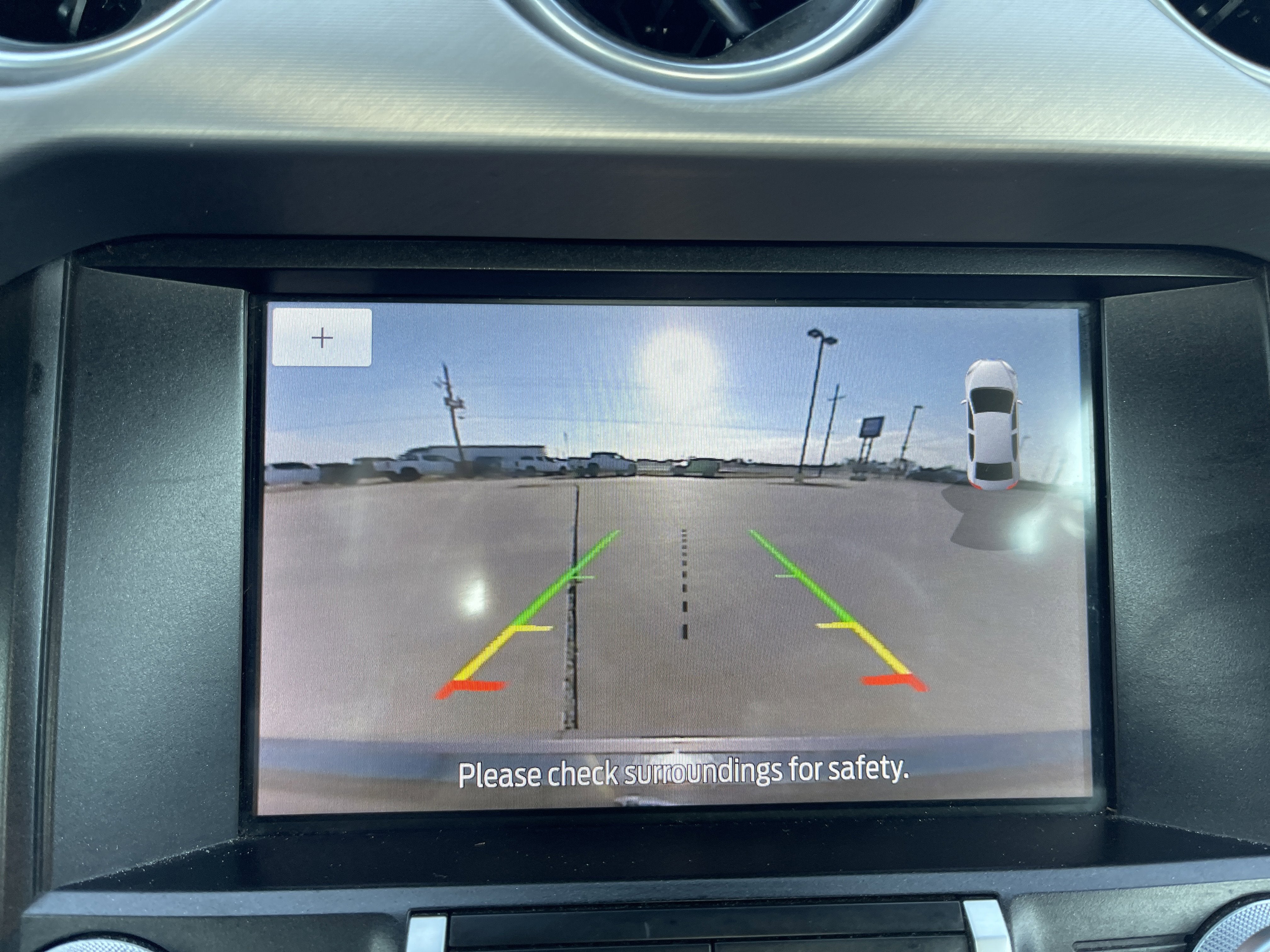 Equipped with 4-Wheel Disc Brakes, ABS brakes, Air Conditioning, Alloy wheels, AM/FM Stereo, Auto High-beam Headlights, Auto-dimming Rear-View mirror, Brake assist, Bumpers: body-color, Compass, Convertible roof lining, Delay-off headlights, Driver door bin, Driver vanity mirror, Dual front impact airbags, Dual front side impact airbags, Electronic Stability Control, Emergency communication system: 911 Assist, Exterior Parking Camera Rear, Four wheel independent suspension, Front anti-roll bar, Front Bucket Seats, Front Center Armrest, Front reading lights, Fully automatic headlights, Glass rear window, Illuminated entry, Knee airbag, Leather Shift Knob, Low tire pressure warning, Occupant sensing airbag, Outside temperature display, Overhead console, Panic alarm, Passenger door bin, Passenger vanity mirror, Power convertible roof, Power door mirrors, Power steering, Power windows, Radio data system, Rain sensing wipers, Rear anti-roll bar, Rear window defroster, Remote keyless entry, Security system, SiriusXM Radio, Speed control, Speed-sensing steering, Speed-Sensitive Wipers, Steering wheel mounted audio controls, SYNC 3 Communications & Entertainment System, Tachometer, Telescoping steering wheel, Tilt steering wheel, Traction control, Trip computer, Variably intermittent wipers, Voltmeter, and Wheels: 18 x 8 Machined-Face Aluminum.