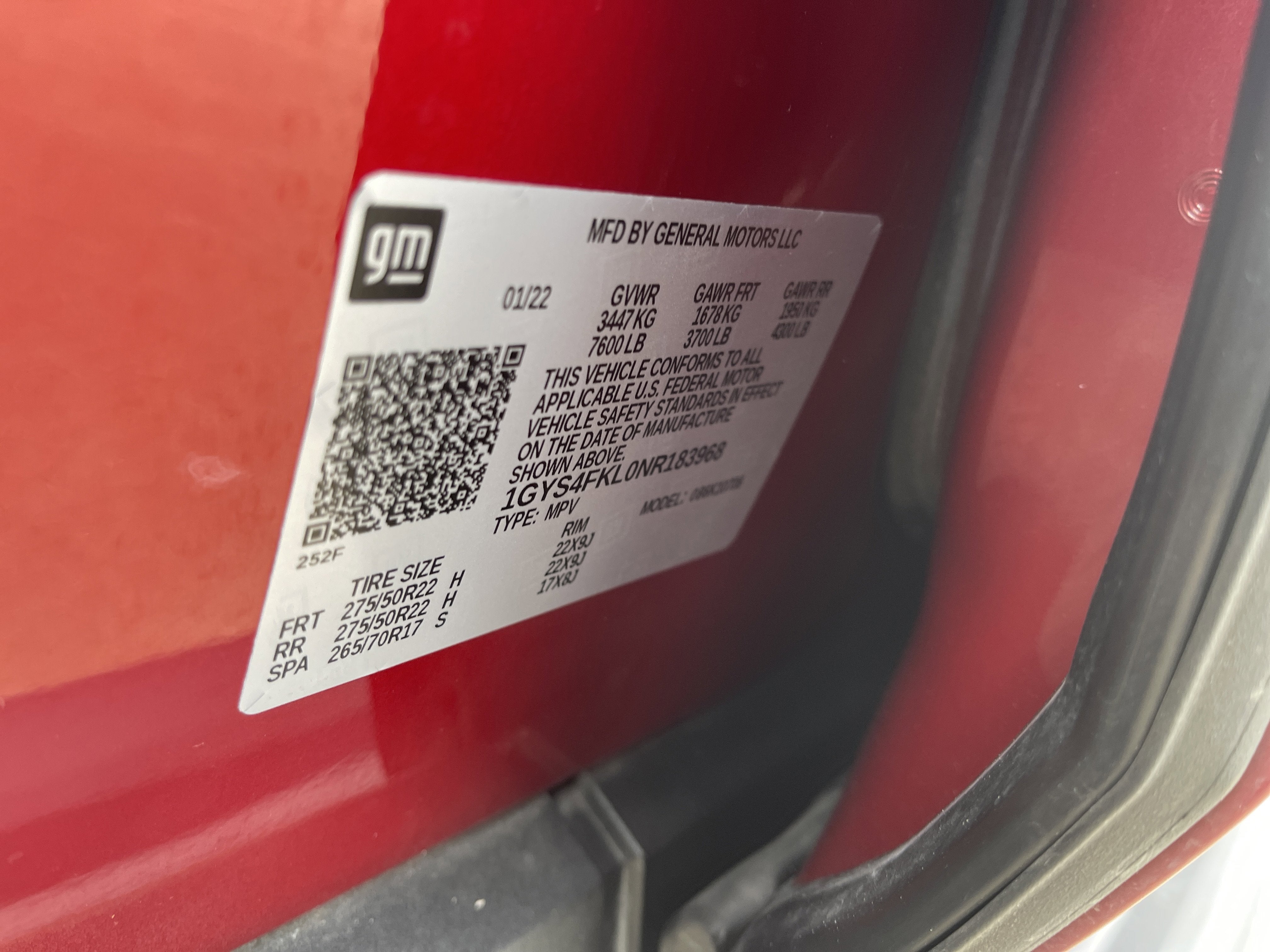 - Tires, 275/50R22SL all-season, blackwall