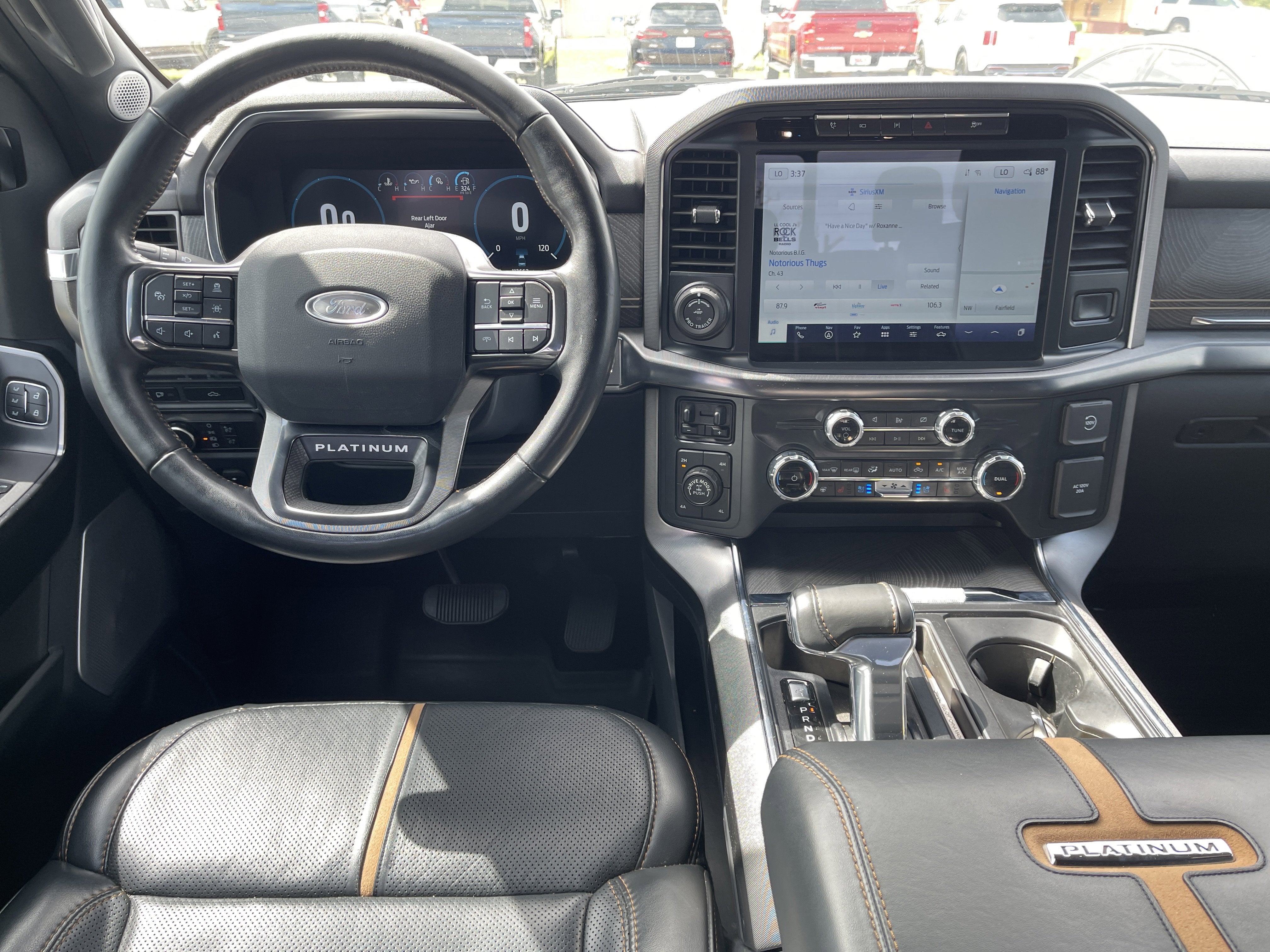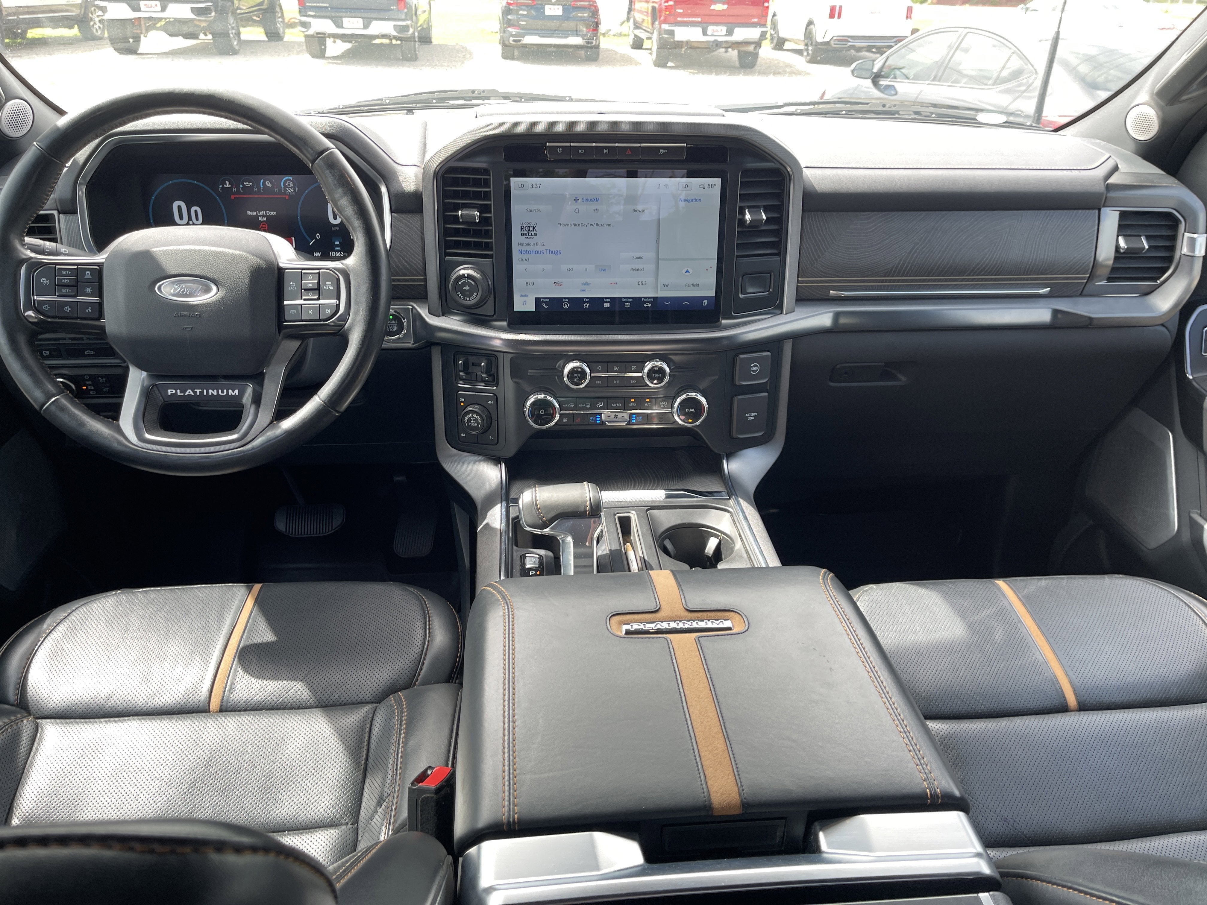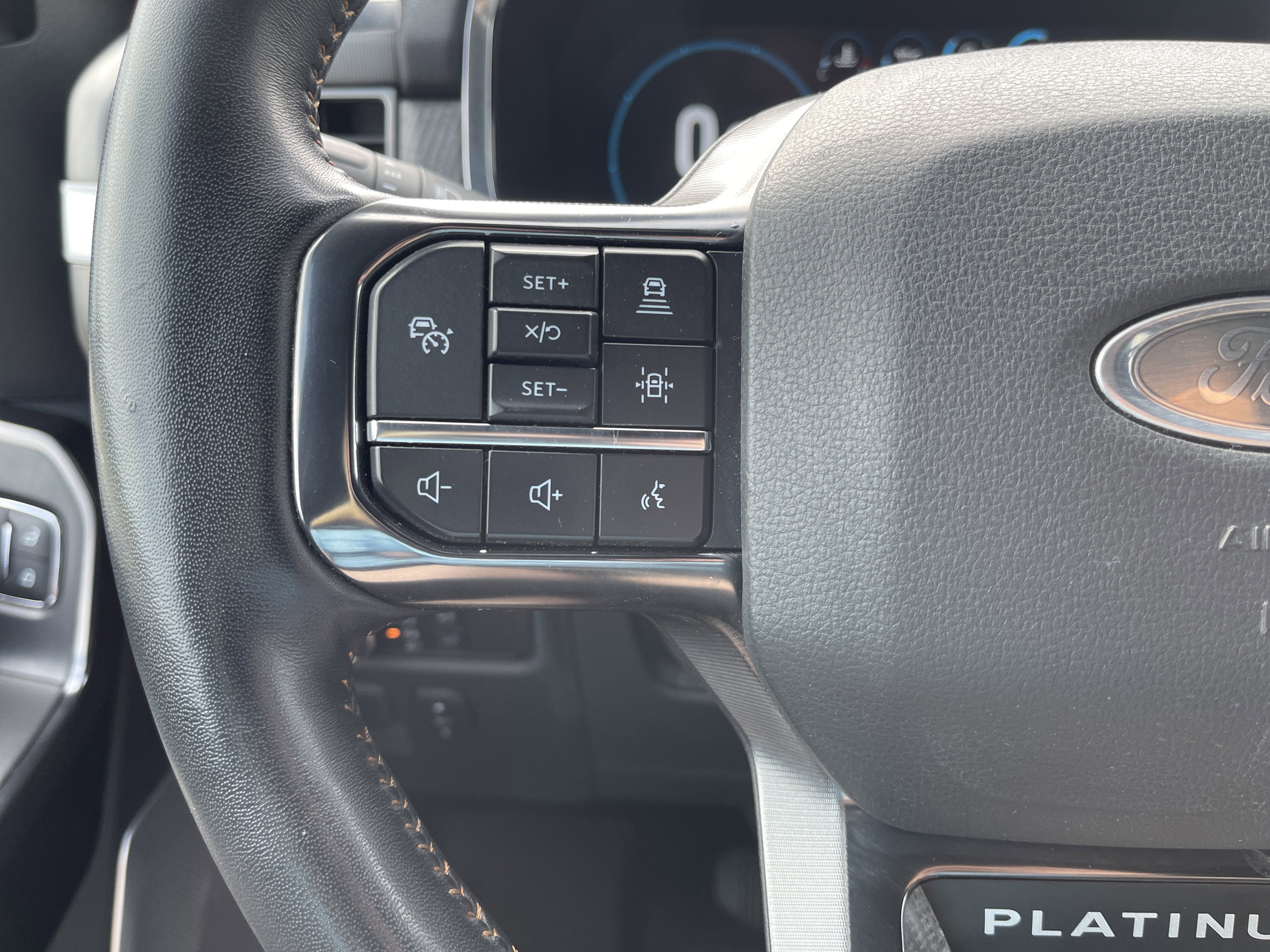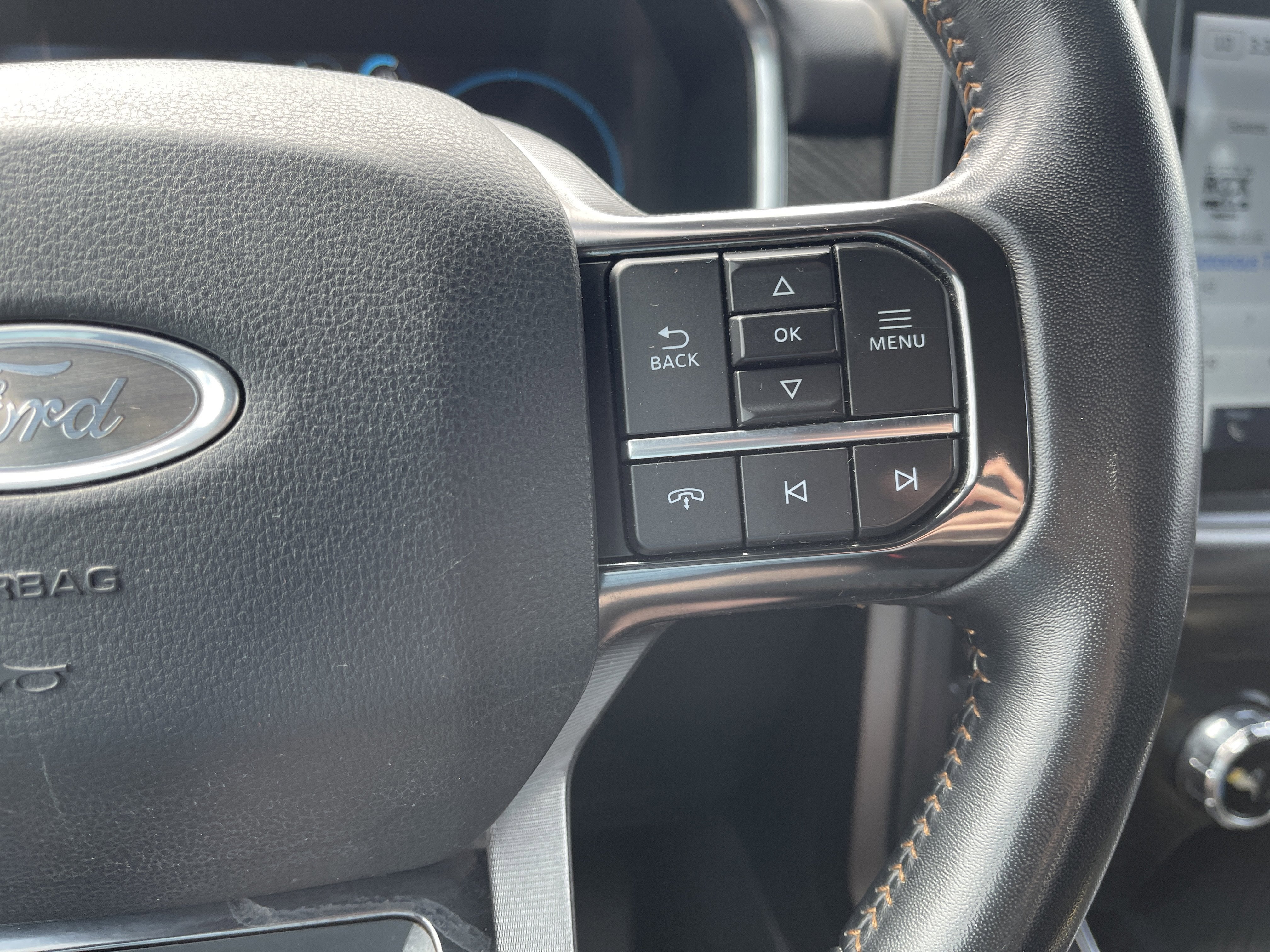 Equipped with Equipment Group 701A High, Max Trailer Tow Package (Class IV Trailer Hitch Receiver, Extended Range 36 Gallon Fuel Tank, Integrated Trailer Brake Controller, and Pro Trailer Backup Assist), 20 Polished Aluminum Wheels, 4-Wheel Disc Brakes, 8 Speakers, ABS brakes, Active Park Assist 2.0 Removal, Adjustable pedals, Air Conditioning, Alloy wheels, AM/FM radio: SiriusXM with 360L, Auto High-beam Headlights, Auto tilt-away steering wheel, Auto-dimming door mirrors, Auto-dimming Rear-View mirror, Automatic temperature control, Brake assist, Bumpers: body-color, Compass, Continuously Controlled Damping, Delay-off headlights, Driver door bin, Driver vanity mirror, Dual front impact airbags, Dual front side impact airbags, Electronic Stability Control, Emergency communication system: SYNC 4 911 Assist, Exterior Parking Camera Rear, Front anti-roll bar, Front Bucket Seats, Front Center Armrest, Front dual zone A/C, Front fog lights, Front License Plate Bracket, Front reading lights, Front wheel independent suspension, Fully automatic headlights, Garage door transmitter, Heated door mirrors, Heated front seats, Heated rear seats, Heated steering wheel, Illuminated entry, Interior Work Surface, Low tire pressure warning, Max Recline Driver & Passenger Seat, Memory seat, Occupant sensing airbag, Onboard Scale w/Smart Hitch, Outside temperature display, Overhead airbag, Overhead console, Panic alarm, Passenger door bin, Passenger vanity mirror, Pedal memory, Power door mirrors, Power driver seat, Power passenger seat, Power steering, Power windows, Pro Power Onboard - 7.2KW, Radio data system, Radio: B&O Sound System by Bang & Olufsen, Rain sensing wipers, Rear reading lights, Rear seat center armrest, Rear step bumper, Rear window defroster, Remote keyless entry, Security system, Speed control, Speed-sensing steering, Split folding rear seat, Steering wheel memory, Steering wheel mounted audio controls, SYNC 4 w/Enhanced Voice Recognition, Tachometer, Telescoping steering wheel, Tilt steering wheel, Tough Bed Spray-In Bedliner, Traction control, Tray Style Floor Liner, Trip computer, Turn signal indicator mirrors, Twin Panel Moonroof, Unique Multi-Contour Leather Bucket Seats, Variably intermittent wipers, Ventilated front seats, and Voltmeter.