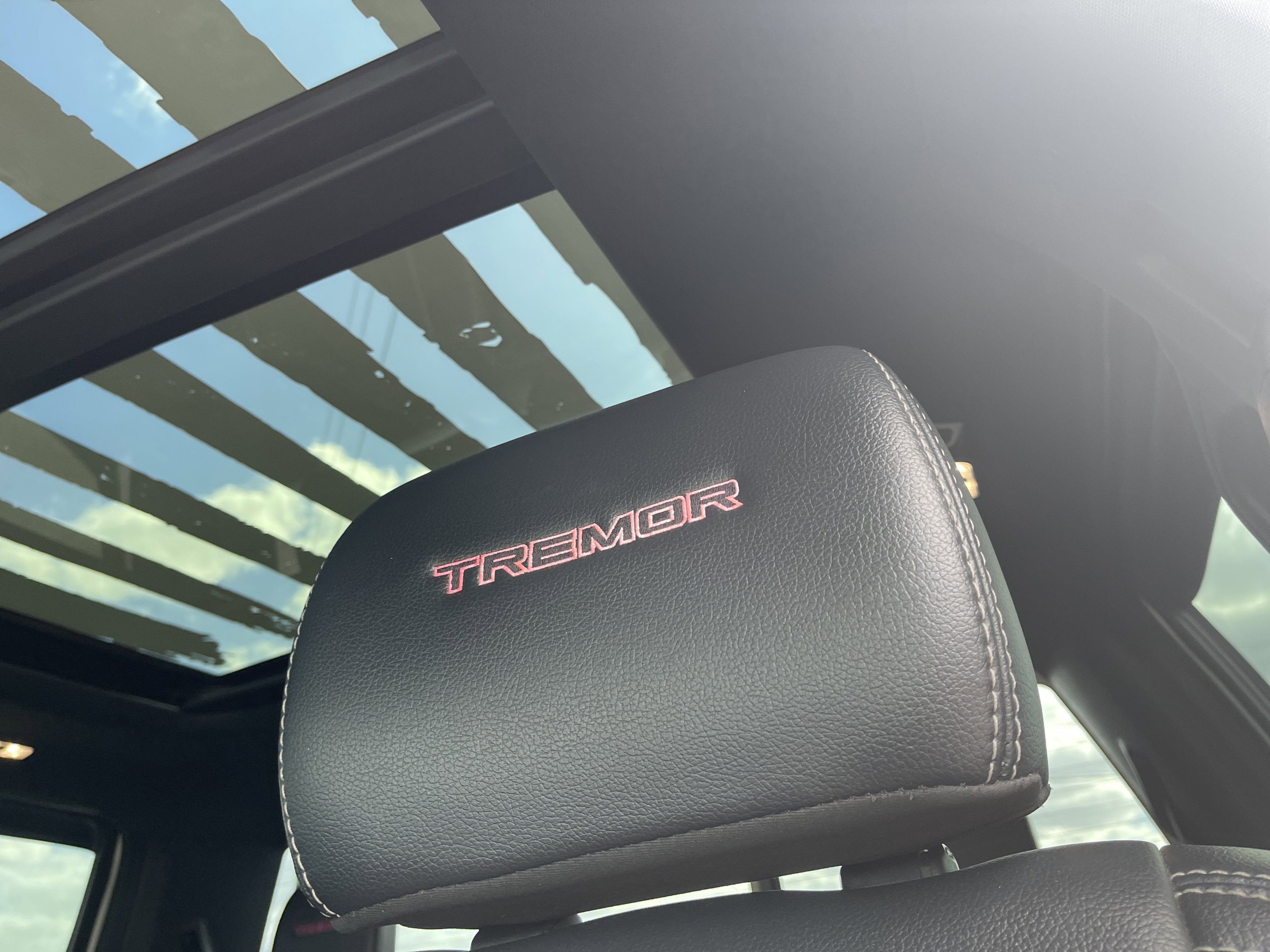 Equipped with 5th Wheel/Gooseneck Hitch Prep Package, Black Appearance Package (6 Ebony Black Angular Running Boards, Black Out Surrounds LED Only Headlamps, Body-Color Front & Rear Bumpers, Ebony Black Painted Front Grille Bars, Ebony Black Painted Mirror Caps, Rear Wheel Well Liners (Pre-Installed), Tough Bed Spray-In Bedliner, and Wheels: 20 High-Gloss Black Premium Painted Alum), GVWR: 10,000 lb Payload Package, High Capacity Trailer Tow Package, Lariat Ultimate Package (Ambient Lighting - Fixed Color, Easy Entry®/Exit Memory Driver's Seat Feature, Intelligent Access w/Push-Button Start, LED Box Lighting, Memory Power-Adjustable Pedals, Power Heated/Ventilated Driver Seat w/Memory, Power Heated/Ventilated Passenger Seat, Power Telescoping/Tilt Steering Wheel/Column, PowerScope Trailer Tow Mirrors w/Memory, Remote Start System, Remote Tailgate Release, and Tailgate Step & Handle), Order Code 608A, Pro Trailer Backup Assist - High Capacity (Lane Departure Warning System and Ultimate Trailer Tow Camera System), 10 Speakers, 4-Wheel Disc Brakes, ABS brakes, Adjustable pedals, Air Conditioning, Alloy wheels, AM/FM radio: SiriusXM with 360L, Auto High-beam Headlights, Auto-dimming Rear-View mirror, Automatic temperature control, Brake assist, Bumpers: chrome, Compass, Delay-off headlights, Driver door bin, Driver vanity mirror, Dual front impact airbags, Dual front side impact airbags, Electronic Stability Control, Emergency communication system: SYNC 4 911 Assist, Engine Block Heater, Exterior Parking Camera Rear, Flow-Through Console, Front anti-roll bar, Front Bucket Seats, Front Center Armrest, Front dual zone A/C, Front fog lights, Front Leather Seating Surfaces 40/Console/40, Front reading lights, Fully automatic headlights, Heated door mirrors, Heated Steering Wheel, Illuminated entry, Leather steering wheel, Low tire pressure warning, Navigation system: Connected Navigation, Outside temperature display, Overhead airbag, Overhead console, Panic alarm, Passenger door bin, Passenger vanity mirror, Power door mirrors, Power driver seat, Power passenger seat, Power steering, Power windows, Power-Deployable Running Boards, PowerScope Trailer Tow Mirrors w/Heat, Radio data system, Radio: B&O Sound System by Bang & Olufsen, Rain-Sensing Windshield Wipers, Rear Parking Sensors, Rear reading lights, Rear seat center armrest, Rear step bumper, Rear window defroster, Remote keyless entry, Security system, SiriusXM Radio w/360L, Speed control, Split folding rear seat, Steering wheel mounted audio controls, SYNC 4 w/Enhanced Voice Recognition, Tachometer, Telescoping steering wheel, Tilt steering wheel, Traction control, Trip computer, Turn signal indicator mirrors, Twin Panel Power Moonroof, Universal Garage Door Opener (UGDO), Upfitter Switches (6), Variably intermittent wipers, and Wheels: 18 Bright Machined Cast Aluminum.