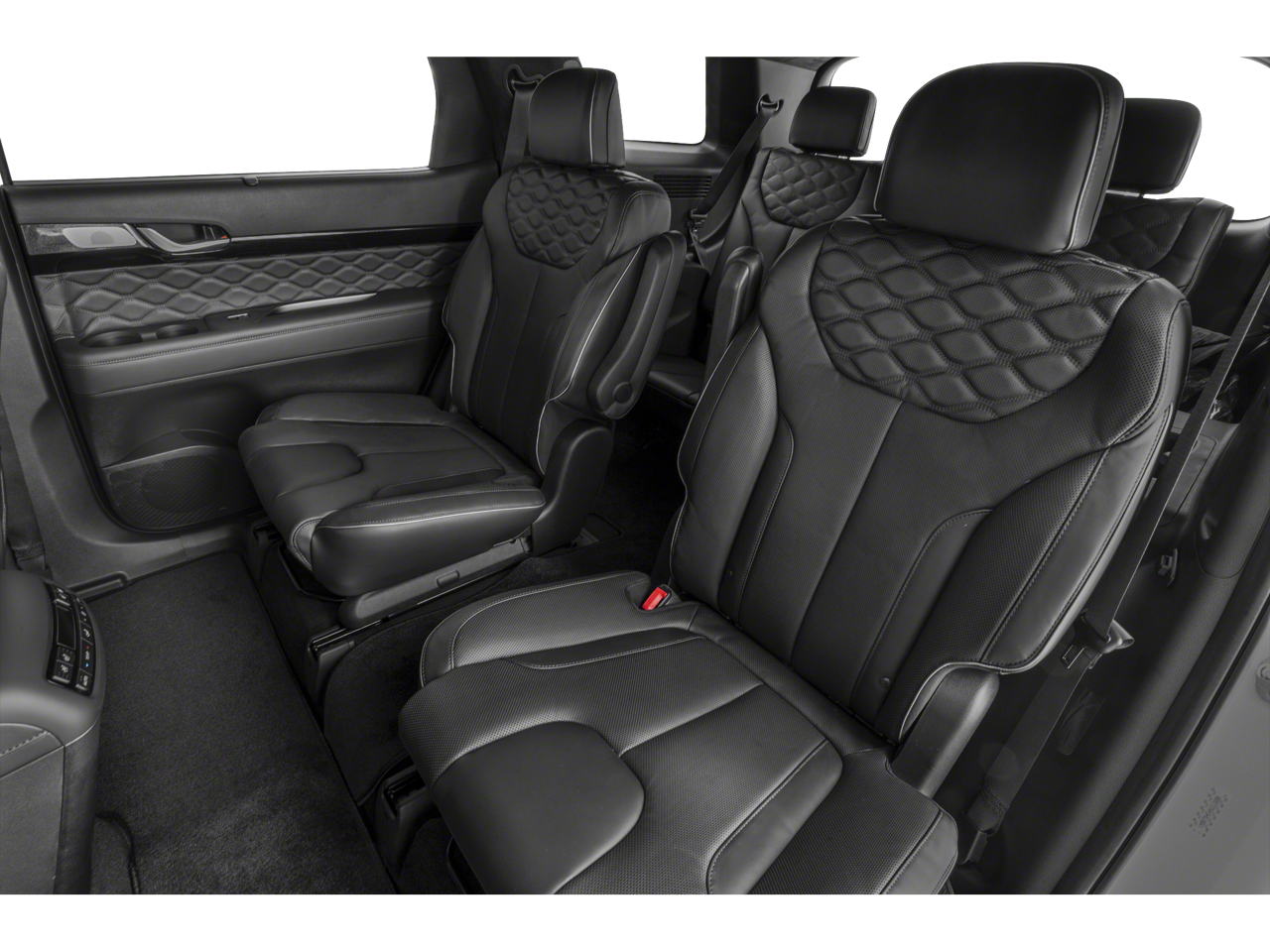 Equipped with Option Group 01, 12 Speakers, 3.648 Axle Ratio, 3rd row seats: split-bench, 4-Wheel Disc Brakes, ABS brakes, Air Conditioning, Alloy wheels, AM/FM radio: SiriusXM, Apple CarPlay & Android Auto, Auto High-beam Headlights, Auto-dimming Rear-View mirror, Auto-leveling suspension, Automatic temperature control, Brake assist, Bumpers: body-color, Cargo Cover/Screen, Cargo Net, Carpeted Floor Mats, Compass, Delay-off headlights, Driver door bin, Driver vanity mirror, Dual front impact airbags, Dual front side impact airbags, Electronic Stability Control, Emergency communication system: Blue Link Connected Car Service (3-year complimentary subscription), Four wheel independent suspension, Front anti-roll bar, Front Bucket Seats, Front Center Armrest, Front dual zone A/C, Front reading lights, Fully automatic headlights, Garage door transmitter: HomeLink, harman/kardon® Speakers, Heads-Up Display, Heated & Ventilated Front Bucket Seats, Heated door mirrors, Heated front seats, Heated rear seats, Heated steering wheel, Illuminated entry, Knee airbag, Low tire pressure warning, Memory seat, Navigation System, Occupant sensing airbag, Outside temperature display, Overhead airbag, Overhead console, Panic alarm, Passenger door bin, Passenger vanity mirror, Power door mirrors, Power driver seat, Power Liftgate, Power moonroof, Power passenger seat, Power steering, Power windows, Premium Nappa Leather Seat Trim, Radio data system, Radio: AM/FM/MP3 Premium Audio System, Rain sensing wipers, Rear air conditioning, Rear anti-roll bar, Rear audio controls, Rear reading lights, Rear window defroster, Rear window wiper, Reclining 3rd row seat, Remote keyless entry, Security system, Speed control, Speed-sensing steering, Split folding rear seat, Spoiler, Steering wheel mounted audio controls, Tachometer, Telescoping steering wheel, Tilt steering wheel, Traction control, Trip computer, Turn signal indicator mirrors, Variably intermittent wipers, Ventilated front seats, Ventilated rear seats, Wheel Locks, and Wheels: 20 x 7.5J Calligraphy Exclusive Alloy.