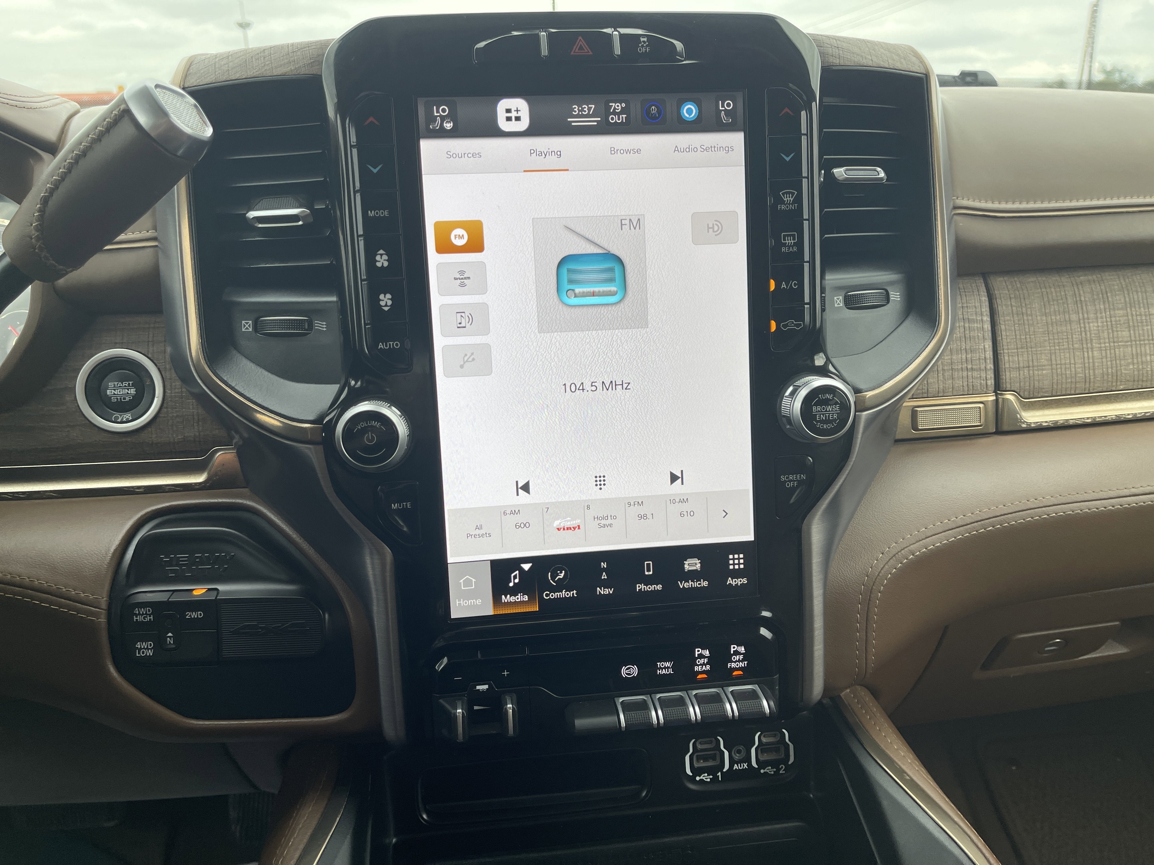 Equipped with Longhorn Level 1 Equipment Group (12 Touchscreen Display, 17 Speaker harman kardon Premium Sound, 4G LTE Wi-Fi Hot Spot, Alexa Built-In, All R1 High Radios, All Radio Equipped Vehicles, Apple CarPlay, Connected Travel & Traffic Services, Connectivity - US/Canada, Disassociated Touchscreen Display, For Details Visit DriveUconnect.com, For More Info, Call 800-643-2112, Global Telematics Box Module (TBM), Google Android Auto, GPS Antenna Input, GPS Navigation, HD Radio, Integrated Voice Command w/Bluetooth®, Off-Road Information Pages, Power Deployable Running Boards, Radio: Uconnect 5 Nav w/12.0 Display, Ramcharger Wireless Charging Pad, Selectable Tire Fill Alert, SiriusXM Radio Service, SiriusXM Satellite Radio, and SiriusXM w/360L), Quick Order Package 2HK Longhorn, 10 Speakers, 115V Auxiliary Rear Power Outlet, 2 Way Rear Headrest Seat, 220 Amp Alternator, 3.73 Axle Ratio, 4 Way Front Headrests, 4-Wheel Disc Brakes, 5th Wheel/Gooseneck Towing Prep Group, 8.4 Touchscreen Display, ABS brakes, Active Noise Control System, Adaptive Steering System, Adjustable pedals, Air Conditioning, Alloy wheels, AM/FM radio: SiriusXM with 360L, Apple CarPlay/Android Auto, Audio memory, Auto High-beam Headlights, Auto-dimming Rear-View mirror, Automatic temperature control, Blind Spot & Cross Path Detection (DISC), Brake assist, Bucket Seats, Bumpers: chrome, Center Hub, Chrome Tow Hooks, Clearance Lamps, Compass, CTR Stop Lamp w/Cargo View Camera, Delay-off headlights, Driver door bin, Driver vanity mirror, Dual front impact airbags, Dual front side impact airbags, Electronic Stability Control, Electronically Controlled Throttle, Front anti-roll bar, Front Bucket Seats, Front Center Armrest w/Storage, Front dual zone A/C, Front fog lights, Front License Plate Bracket, Front reading lights, Front Seat Back Map Pockets, Full Length Premium Upgraded Floor Console, Fully automatic headlights, Garage door transmitter, Genuine wood console insert, Genuine wood dashboard insert, Genuine wood door panel insert, Heated door mirrors, Heated Front Seats, Heated front seats, Heated rear seats, Heated Second Row Seats, Heated Steering Wheel, Heated steering wheel, High Back Seats, Illuminated entry, Integrated Center Stack Radio, Leather steering wheel, Low tire pressure warning, Memory seat, Navigation System, Occupant sensing airbag, Outside temperature display, Overhead airbag, Overhead console, Panic alarm, ParkView Rear Back-Up Camera, Passenger door bin, Passenger vanity mirror, Pedal memory, Power 8-Way Adjustable Passenger Seat, Power Adjust 8-Way Driver Seat, Power door mirrors, Power driver seat, Power passenger seat, Power steering, Power Sunroof, Power windows, Premium Filigree Leather Seats, Radio data system, Radio: Uconnect 5 Nav w/8.4 Display, Rain sensing wipers, Rear 60/40 Folding Seat, Rear reading lights, Rear seat center armrest, Rear step bumper, Rear window defroster, Remote keyless entry, Security system, Speed control, Split folding rear seat, Steering wheel mounted audio controls, Tachometer, Tilt steering wheel, Tip Start, Traction control, Trip computer, Turn signal indicator mirrors, Variab