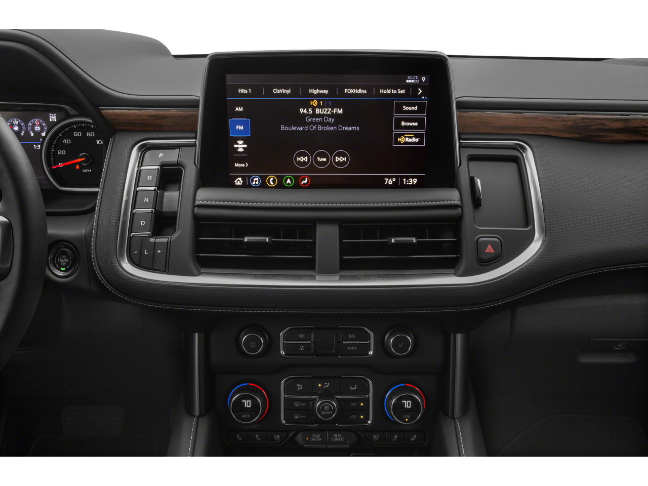 Equipped with License Plate Front Mounting Package, Preferred Equipment Group 1LZ (1st & 2nd Row Color-Keyed Carpeted Floor Mats, 2-Speed Active Electronic AutoTrac Transfer Case, 3rd Row 60/40 Power-Folding Split-Bench, Auto-Dimming Inside Rear-View Mirror, Bose 10-Speaker Surround w/CenterPoint, Bright Front & Rear Door Sill Plates, Chrome Door Handles w/Body-Color Strip, Chrome Mirror Caps, Color-Keyed Carpeting Floor Covering, Driver & Front Outboard Passenger Airbags, Dual Exhaust System, Enhanced Driver Information Center, Floor Console, Hands-Free Rear Power Programmable Liftgate, Heated & Ventilated Driver & Front Passenger Seats, Heated 2nd Row Outboard Seats, Heated Driver & Front Passenger Seats, Heated Steering Wheel, Hill Descent Control, Infotainment Display, Lane Change Alert w/Side Blind Zone Alert, LED Daytime Running Lamps, Memory Settings, Outside Heated Power-Adjustable Mirrors, Power Release 2nd Row Bucket Seats, Power Tilt & Telescopic Steering Column, Rear Cross Traffic Alert, Remote Start, Safety Alert Seat, SiriusXM Radio w/360L, Universal Home Remote, Wireless Charging, and Wrapped Steering Wheel), 10 Speakers, 20 x 9 Polished Aluminum Wheels, 3.23 Rear Axle Ratio, 3rd row seats: split-bench, 4-Wheel Disc Brakes, ABS brakes, Adaptive suspension, Air Conditioning, Alloy wheels, AM/FM radio: SiriusXM with 360L, Apple CarPlay/Android Auto, Auto High-beam Headlights, Auto-dimming door mirrors, Auto-dimming Rear-View mirror, Auto-leveling suspension, Automatic temperature control, Brake assist, Bumpers: body-color, Compass, Delay-off headlights, Deleted 3 Years of Remote Access, Driver door bin, Driver vanity mirror, Dual front impact airbags, Dual front side impact airbags, Electronic Stability Control, Emergency communication system: OnStar and Chevrolet connected services capable, Four wheel independent suspension, Front anti-roll bar, Front Bucket Seats, Front Center Armrest, Front dual zone A/C, Front reading lights, Fully automatic headlights, Garage door transmitter, Heated door mirrors, Heated front seats, Heated rear seats, Heated steering wheel, Illuminated entry, Low tire pressure warning, Magnetic Ride Control Suspension, Memory seat, Navigation System, Occupant sensing airbag, Outside temperature display, Overhead airbag, Overhead console, Panic alarm, Passenger door bin, Passenger vanity mirror, Perforated Leather Seating Surfaces, Power door mirrors, Power driver seat, Power Liftgate, Power passenger seat, Power steering, Power windows, Premium audio system: Chevrolet Infotainment 3 Premium, Radio: Chevrolet Infotainment 3 Premium System, Rain sensing wipers, Rear air conditioning, Rear anti-roll bar, Rear reading lights, Rear window defroster, Rear window wiper, Remote keyless entry, Roof rack: rails only, Security system, Speed control, Speed-sensing steering, Split folding rear seat, Spoiler, Steering wheel memory, Steering wheel mounted audio controls, Tachometer, Telescoping steering wheel, Tilt steering wheel, Traction control, Trip computer, Turn signal indicator mirrors, Variably interm