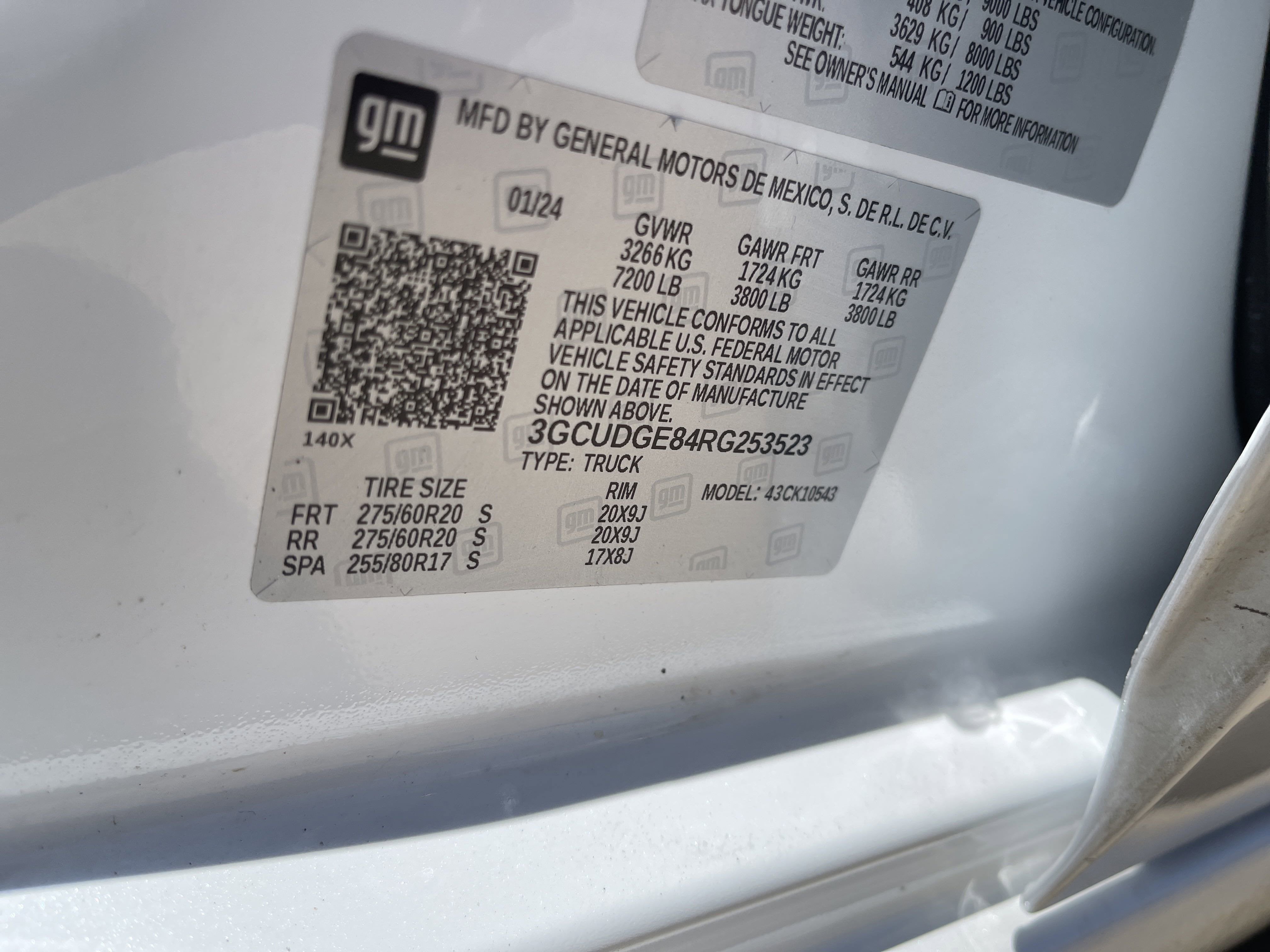 - Tires, 275/60R20 all-season, blackwall