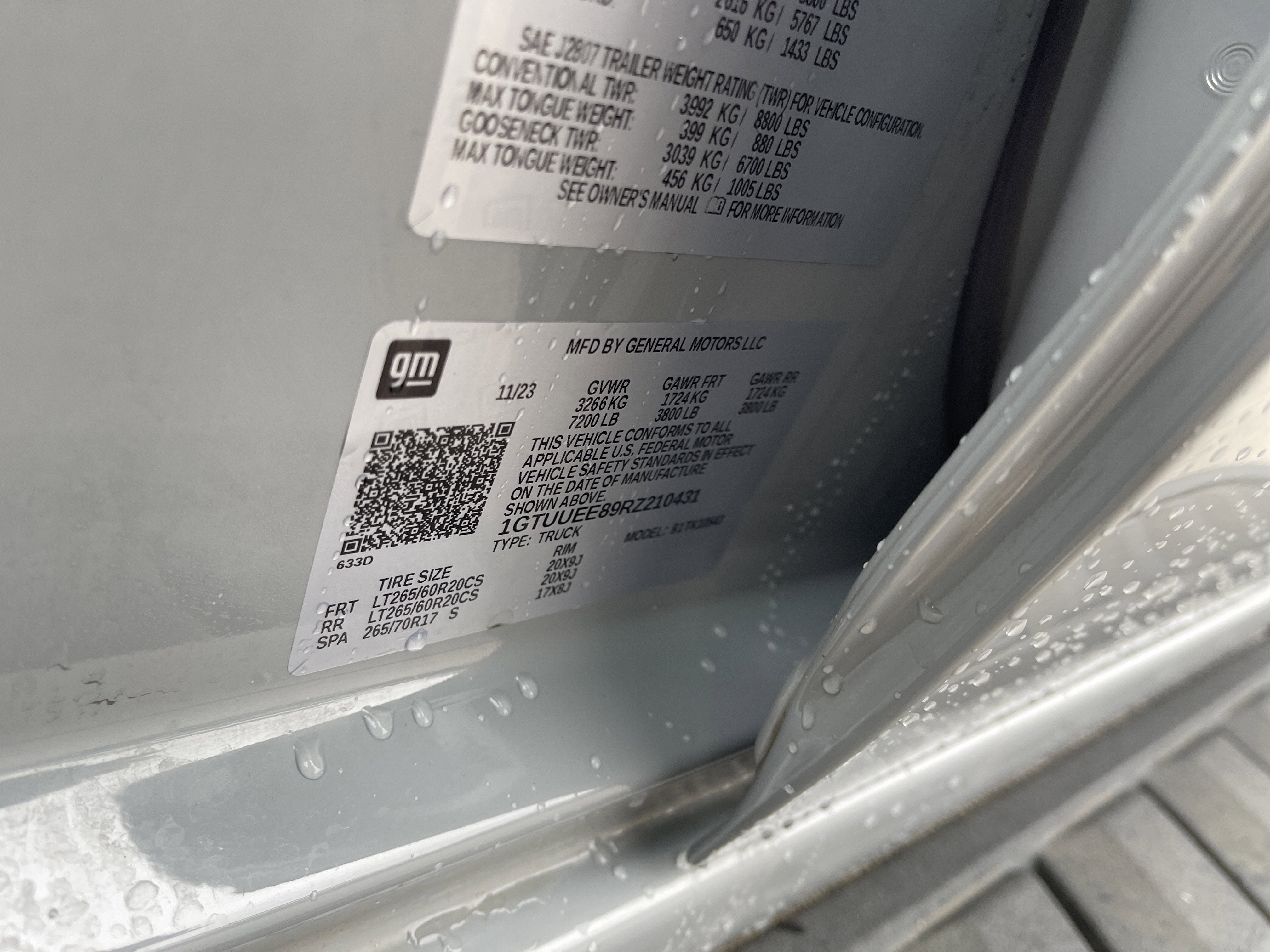 Equipped with AT4 Preferred Package (Power Sliding Rear Window w/Rear Defogger and Universal Home Remote), AT4 Premium Package (Off-Road High Clearance Step (LPO)), Preferred Equipment Group 4SB (120-Volt Bed Mounted Power Outlet, 120-Volt Interior Power Outlet, 2 Charge/Data USB Ports Inside Center Console, 2 Type-C Charge-Only Rear USB Ports, 2 USB Ports, 220 Amp Alternator, Auto-Locking Rear Differential, Black Chrome Header & Grille Insert Bars, Color-Keyed Carpeting Floor Covering, Deep-Tinted Glass, Electric Rear-Window Defogger, Floor-Mounted Center Console, Front Prem Floor Liners w/Removable Carpet Insert, Front Rain-Sensing Wipers, GMC Connected Access Capable, HD Surround Vision, Heated 2nd Row Outboard Seats, Heated Driver & Front Outboard Passenger Seating, Heavy-Duty Air Filter, Hill Descent Control, Hitch View, In-Vehicle Trailering System App, Integrated Trailer Brake Controller, Keyless Open & Start, LED Cargo Area Lighting, OnStar & GMC Connected Services Capable, Perimeter Lighting, Power Door Locks, Power Front Passenger Windows w/Express Up/Down, Power Front Windows w/Driver Express Up/Down, Power Rake & Telescoping Steering Column, Power Rear Windows w/Express Down, Premium Bose 7-Speaker Sound System, Push Button Start, Rear Cross Traffic Braking, Rear Pedestrian Detection, Rear Prem Floor Liners w/Removable Carpet Insert, Rear Wheelhouse Liners, Red Recovery Hooks, Remote Vehicle Starter System, SiriusXM w/360L, Spray-On Pickup Bedliner w/AT4 Logo, Steering Wheel Audio Controls, Theft Deterrent System (Unauthorized Entry), Trailer Camera Provisions, Trailer Side Blind Zone Alert, Ultrasonic Front & Rear Park Assist, Ventilated Driver & Front Passenger Seats, Wi-Fi Hotspot Capable, and Wireless Charging), Technology Package (Bed View Camera, Multicolor 15 Diagonal Head-Up Display, and Rear Camera Mirror), Trailering Package (Hitch Guidance), 10-Way Power Driver Seat Adjuster w/Lumbar, 10-Way Power Passenger Seat Adjuster w/Lumbar, 18 x 8.5 Machined Aluminum Wheels, 3.23 Rear Axle Ratio, 4-Wheel Disc Brakes, 7 Speakers, ABS brakes, Air Conditioning, Alloy wheels, AM/FM radio: SiriusXM with 360L, Apple CarPlay/Android Auto, Auto High-beam Headlights, Auto-dimming door mirrors, Auto-dimming Rear-View mirror, Automatic Emergency Braking, Automatic temperature control, Block heater, Brake assist, Buckle to Drive, Bumpers: body-color, Compass, Delay-off headlights, Driver door bin, Driver Memory, Driver vanity mirror, Dual front impact airbags, Dual front side impact airbags, Electronic Stability Control, Engine Block Heater, Following Distance Indicator, Forward Collision Alert, Front anti-roll bar, Front Bucket Seats, Front Center Armrest, Front dual zone A/C, Front fog lights, Front Pedestrian Braking, Front reading lights, Front wheel independent suspension, Fully automatic headlights, GMC MultiPro Tailgate Step Lights (LPO), Heated door mirrors, Heated front seats, Heated rear seats, Heated steering wheel, Illuminated entry, IntelliBeam Automatic High Beam On/Off, Lane Keep Assist w/Lane Departure Warning, Lo