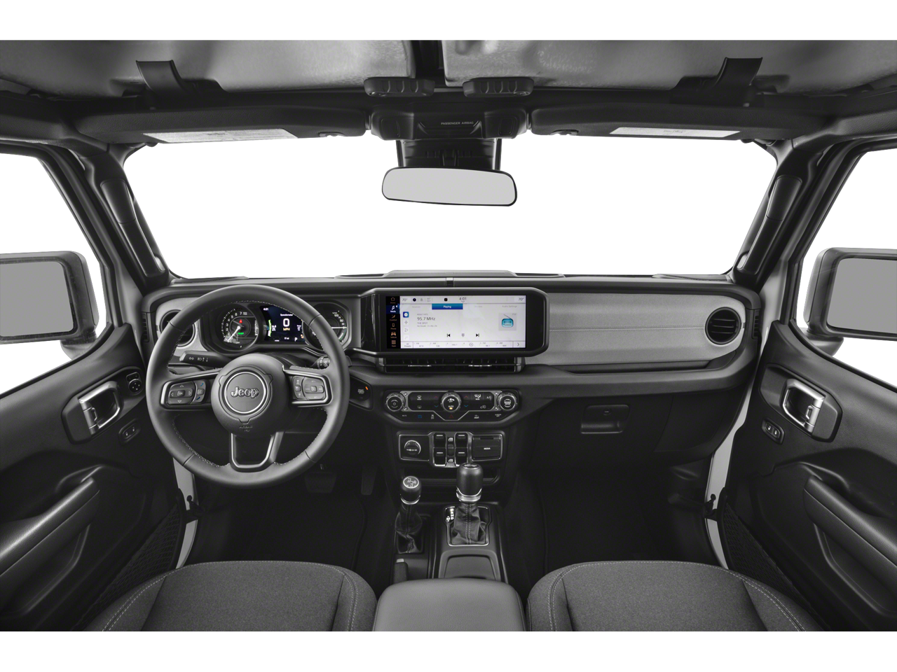 Equipped with Convenience Group (2-Door Passive Entry, Front Door Locks, Emergency/Assistance Call, Heated Front Seats, Heated Steering Wheel, Remote Start System, and Universal Garage Door Opener), Quick Order Package 29W Willys (4xe 4-Wheel Drive Swing Gate Decal, 7 & 4 Pin Wiring Harness, 97 MPH Vehicle Max Speed Calibration, Auxiliary Switches, Black Grille, Conventional Differential Front Axle, E-Locker Rear Axle, Front LED Fog Lamps, LED Premium Reflector Headlamps, Molded in Color Rubicon Highline Flare, MOPAR All-Weather Floor Mats, Off-Road Plus Mode, Wheels: 17 x 7.5 Painted Black, Willy's Suspension, Willys, and Willys 4xe Hood Decal), Safety Group (Auto High Beam Headlamp Control, Blind Spot & Cross Path Detection, LED Taillamps, and ParkSense Rear Park Assist System), 4-Wheel Disc Brakes, 8 Speakers, ABS brakes, Air Conditioning, Alloy wheels, Apple CarPlay/Android Auto, Automatic temperature control, Black 3-Piece Hard Top, Brake assist, Cloth Low-Back Bucket Seats, Compass, Delay-off headlights, Driver door bin, Driver vanity mirror, Dual front impact airbags, Dual front side impact airbags, Electronic Stability Control, Freedom Panel Storage Bag, Front anti-roll bar, Front Bucket Seats, Front Center Armrest w/Storage, Front dual zone A/C, Front fog lights, Front License Plate Bracket, Front reading lights, Fully automatic headlights, Heated door mirrors, Illuminated entry, Integrated roll-over protection, Low tire pressure warning, MOPAR Cargo Tub Liner, MOPAR Plastic Door Sill Guards, No Soft Top, Occupant sensing airbag, Outside temperature display, Overhead airbag, Panic alarm, ParkView Rear Back-Up Camera, Passenger door bin, Passenger vanity mirror, Power door mirrors, Power steering, Power windows, Radio data system, Radio: Uconnect 5 w/12.3 Display, Rear anti-roll bar, Rear reading lights, Rear Window Defroster, Rear Window Wiper/Washer, Remote keyless entry, Security system, Speed control, Split folding rear seat, Sport Suspension, Steering wheel mounted audio controls, Tachometer, Telescoping steering wheel, Tilt steering wheel, Traction control, Trip computer, Variably intermittent wipers, Voltmeter, and Wheels: 20 x 8 Machined/Painted Gray.