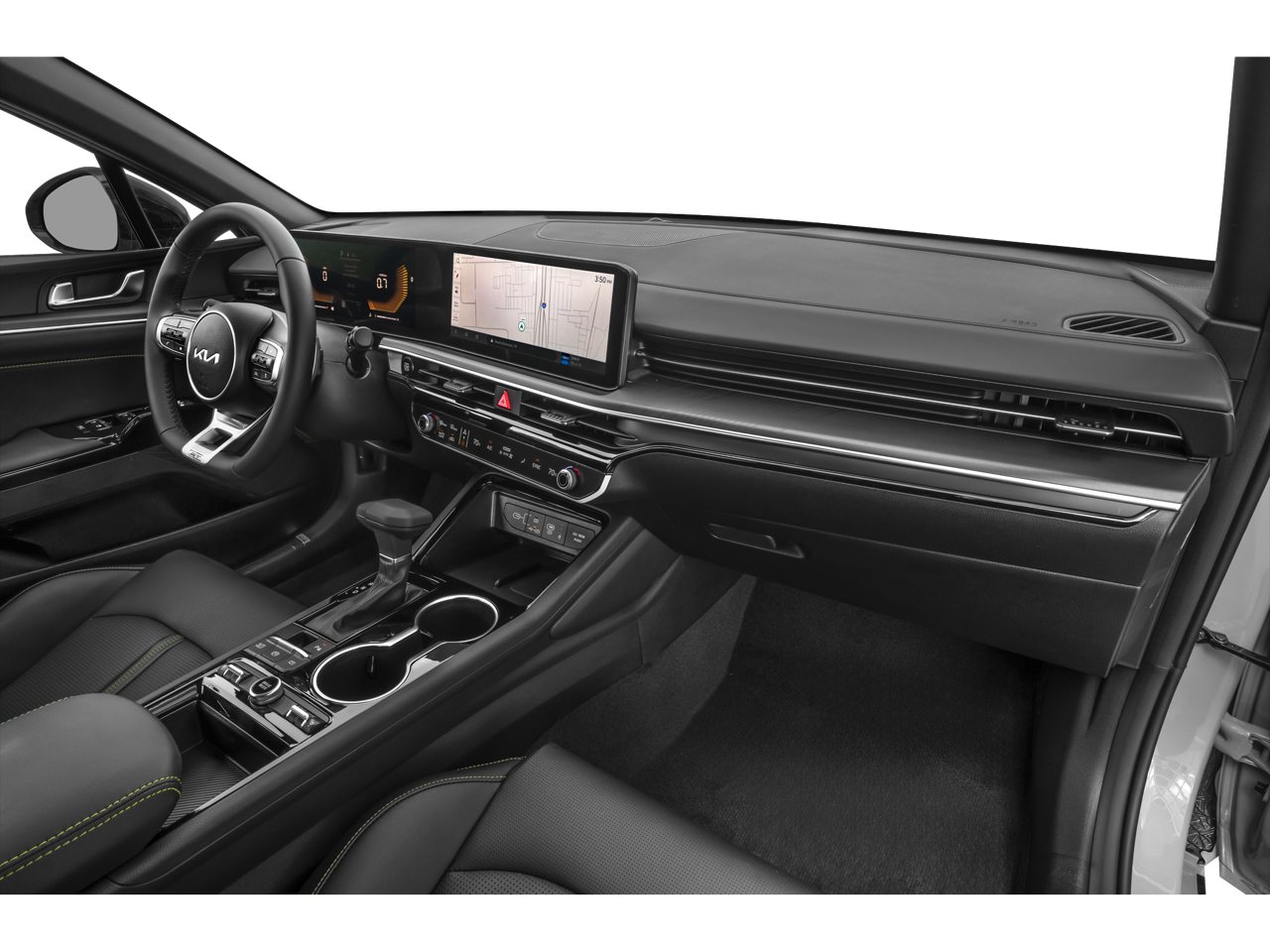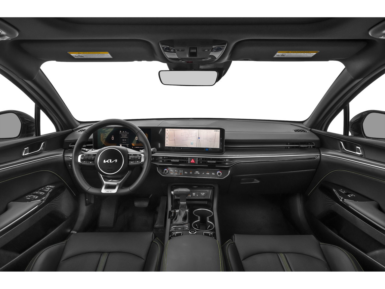 Equipped with GT1 Package (12.3 Instrument Display, 2-Position Memory Driver's Seat & Outside Mirrors, Active Sound Design, Auto Up/Down Front Passenger & Rear Windows, Blind-Spot View Monitor, Bose Premium Audio, Heated Steering Wheel, Parking Collision Avoidance-Assist - Reverse, Parking Distance Warning - Side, Power Folding Mirrors, Power Front Passenger Seat, Smartphone Digital Key, Surround View Monitor, Ventilated Front Seats, and Wheels: 19 x 8.0J Gloss Black Custom Alloy), 4-Wheel Disc Brakes, 6 Speakers, ABS brakes, Air Conditioning, Alloy wheels, AM/FM radio: SiriusXM, Auto High-beam Headlights, Automatic temperature control, Brake assist, Bumpers: body-color, Cargo Tray, Carpeted Floor Mats, Delay-off headlights, Driver door bin, Driver vanity mirror, Dual front impact airbags, Dual front side impact airbags, Electronic Stability Control, Emergency communication system: Kia Connect (includes 1 year free trial), Four wheel independent suspension, Front anti-roll bar, Front Bucket Seats, Front Center Armrest, Front dual zone A/C, Front fog lights, Front reading lights, Fully automatic headlights, Heated door mirrors, Heated front seats, Heated Sport Bucket Seats, Illuminated entry, Knee airbag, Leather Shift Knob, Leather steering wheel, Low tire pressure warning, Navigation System, Occupant sensing airbag, Outside temperature display, Overhead airbag, Overhead console, Panic alarm, Passenger door bin, Passenger vanity mirror, Power door mirrors, Power driver seat, Power moonroof, Power steering, Power windows, Radio data system, Radio: AM/FM Audio System, Rear anti-roll bar, Rear reading lights, Rear seat center armrest, Rear side impact airbag, Rear window defroster, Remote keyless entry, Security system, Speed control, Speed-sensing steering, Split folding rear seat, Sport steering wheel, Steering wheel mounted audio controls, SynTex Seat Trim, Tachometer, Telescoping steering wheel, Tilt steering wheel, Traction control, Trip computer, Turn signal indicator mirrors, Variably intermittent wipers, and Wheels: 19 x 8.0J Gloss Black Machined Finish Alloy.